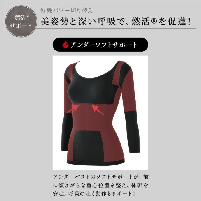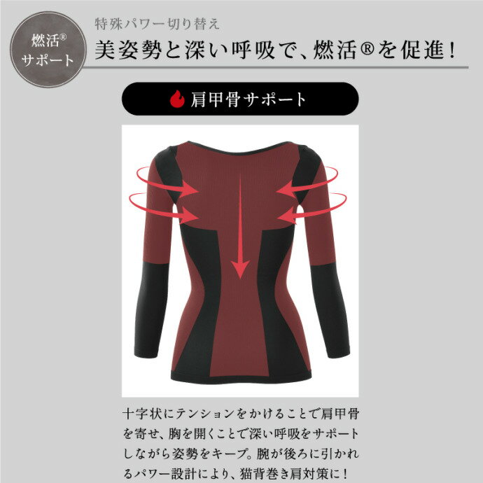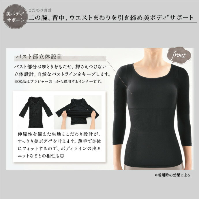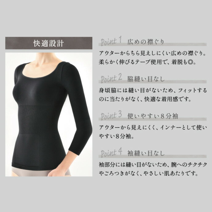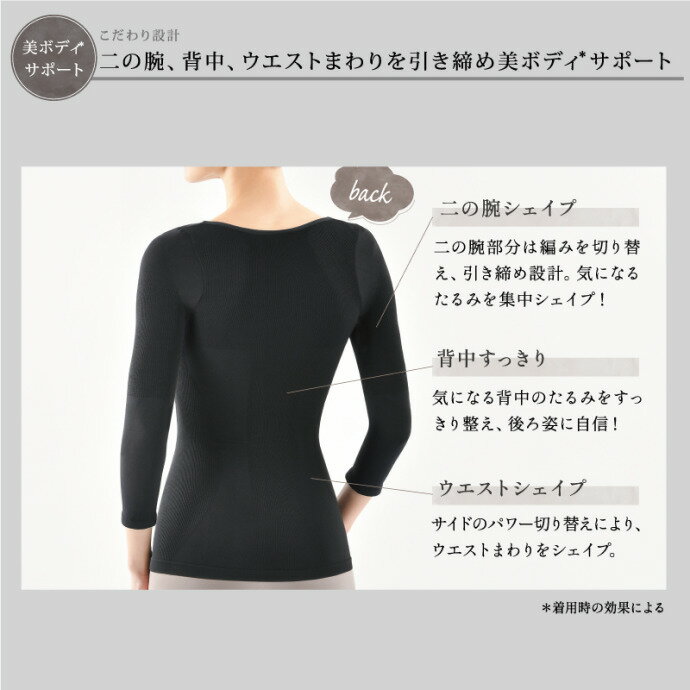 ビーフィット 燃活サポート美姿勢インナー(ブラック) 光電子 二の腕 背中 ウエスト 引締め ボディ 肩甲骨 猫背 巻肩 シェイプ たるみ 8分袖