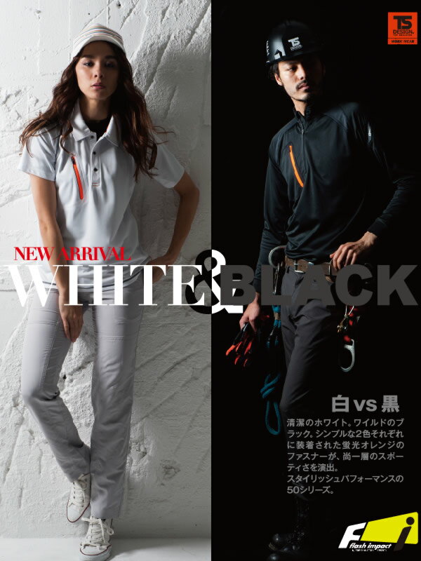 5075 藤和【TS DESIGN】★TOWA 長袖ポロシャツ★【FLASH IMPACT】シンプルな色展開に、蛍光オレンジのファスナーがスポーティさを演出 ドライメッシュ長袖シャツ(SSレディースサイズ・5Lサイズ)【メール便で送料無料!!】