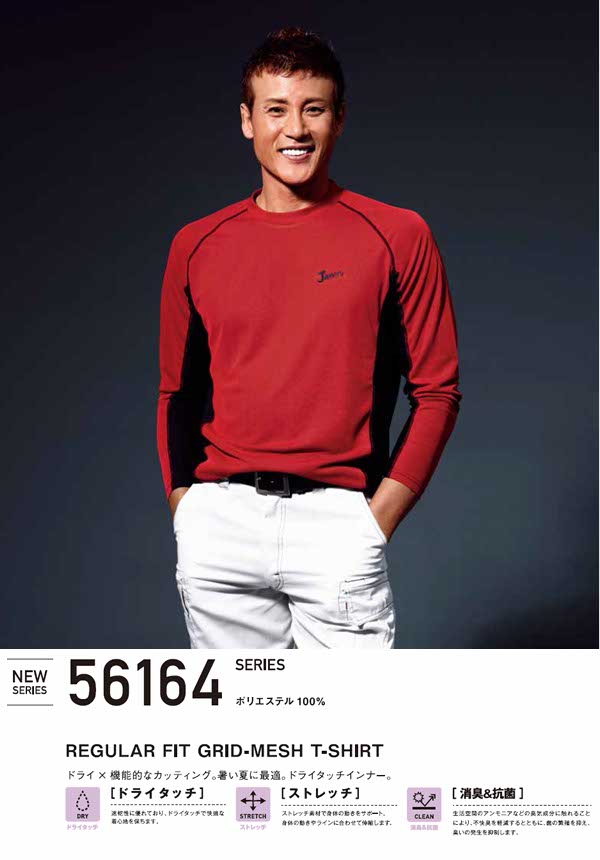 自重堂【Jawin ジャウィン】ドライタッチストレッチインナー【REGULAR FIT GRID-MESH T-SHIRT】【56174】吸汗速乾加工で機能的なカッティング ドライ感が持続する、暑い夏に最適な半袖ドライタッチストレッチインナー★【メール便送料無料】2015SS