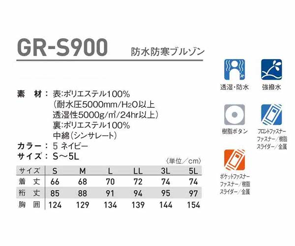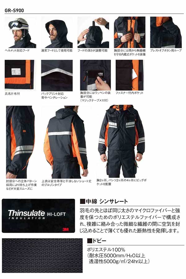 GR-S900 【タカヤ商事】防水防寒ブルゾン ジャンバー 防寒服 機能性や収納力を高めつつ動きやすさを追求したプロユースの透湿防水防寒ウエア セキュリティー用ウエア 【WORK VOICE】2015秋冬新商品