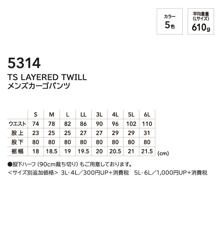 藤和【TSDESIGN】TSLAYEREDTWILLメンズカーゴパンツ 5314 高耐久ストレッチデニムライクなエコ素材にリニューアル 作業ズボン 【2024秋冬新商品】