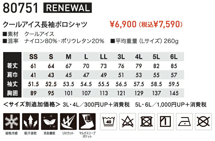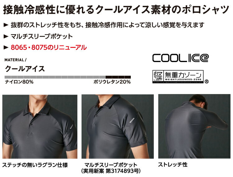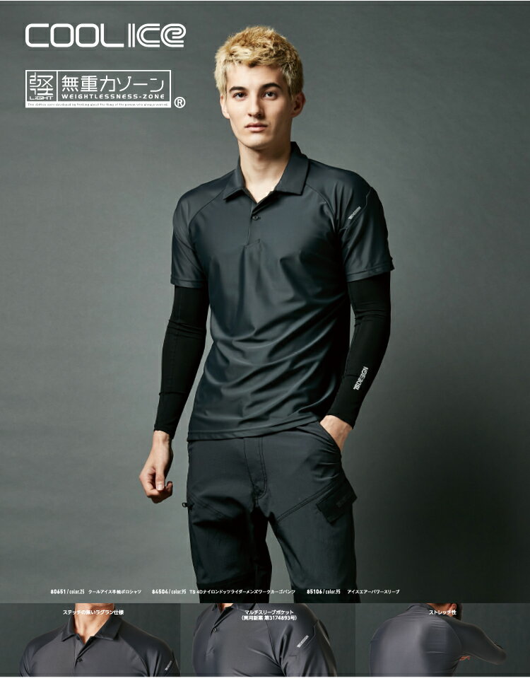 藤和【TS DESIGN】クールアイス長袖ポロシャツ【MUSCLESUPPORT】80751抜群のストレッチ性 接触冷感作用 肩袖ポケット【メール便送料無料】2022春夏新商品