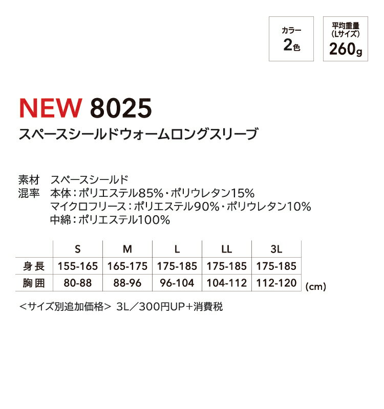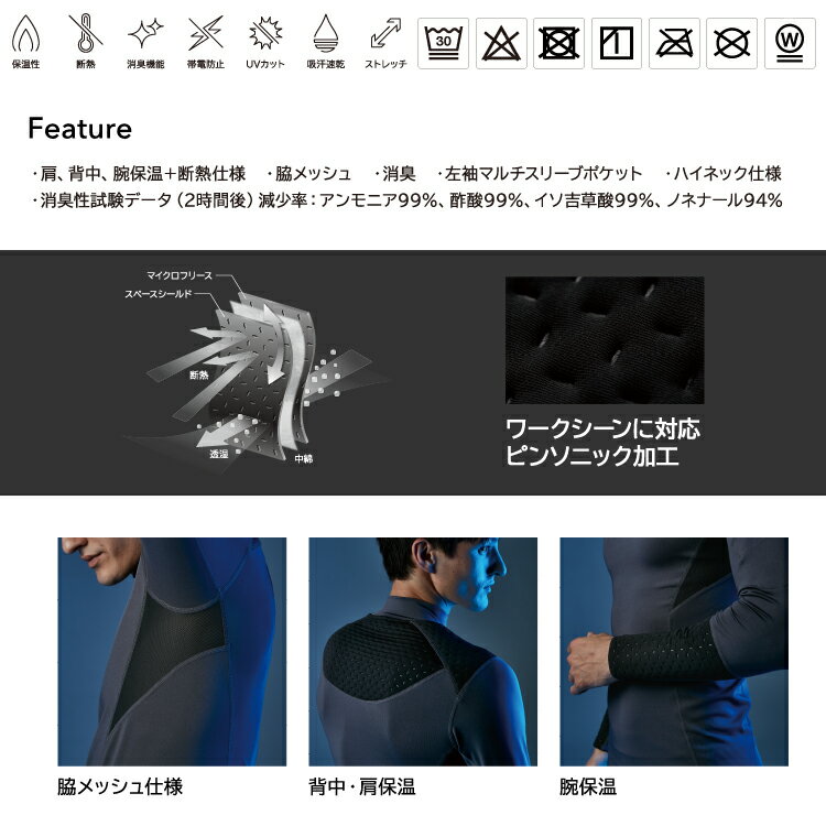 藤和【TSDESIGN】スペースシールドウォームロングスリーブ【tsfuture】 8025 脇メッシュ仕様 保温 断熱 消臭 多機能アンダーウエア 機能性インナー 【2024秋冬新商品】【メール便送料無料】