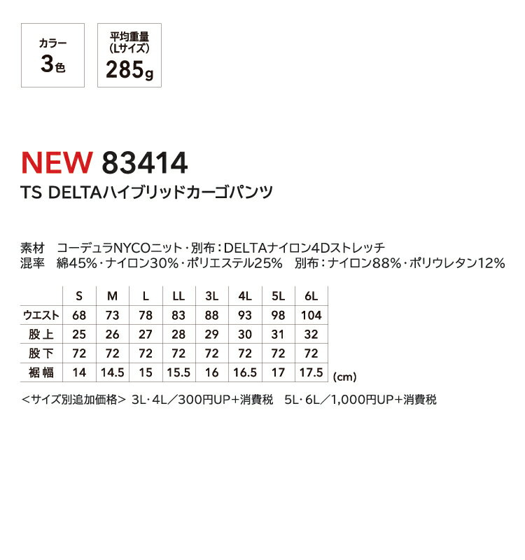 藤和【TSDESIGN】TSDELTAハイブリッドカーゴパンツ【KNICKER'S】 83414 機能性・耐久性を高めるハイブリッドデザイン 作業ズボン 鳶 【2024秋冬新商品】