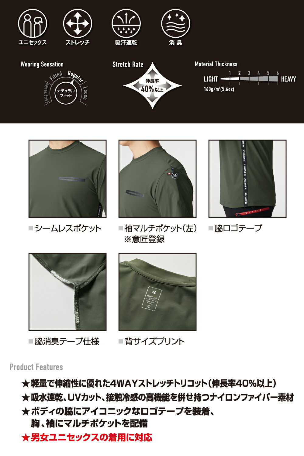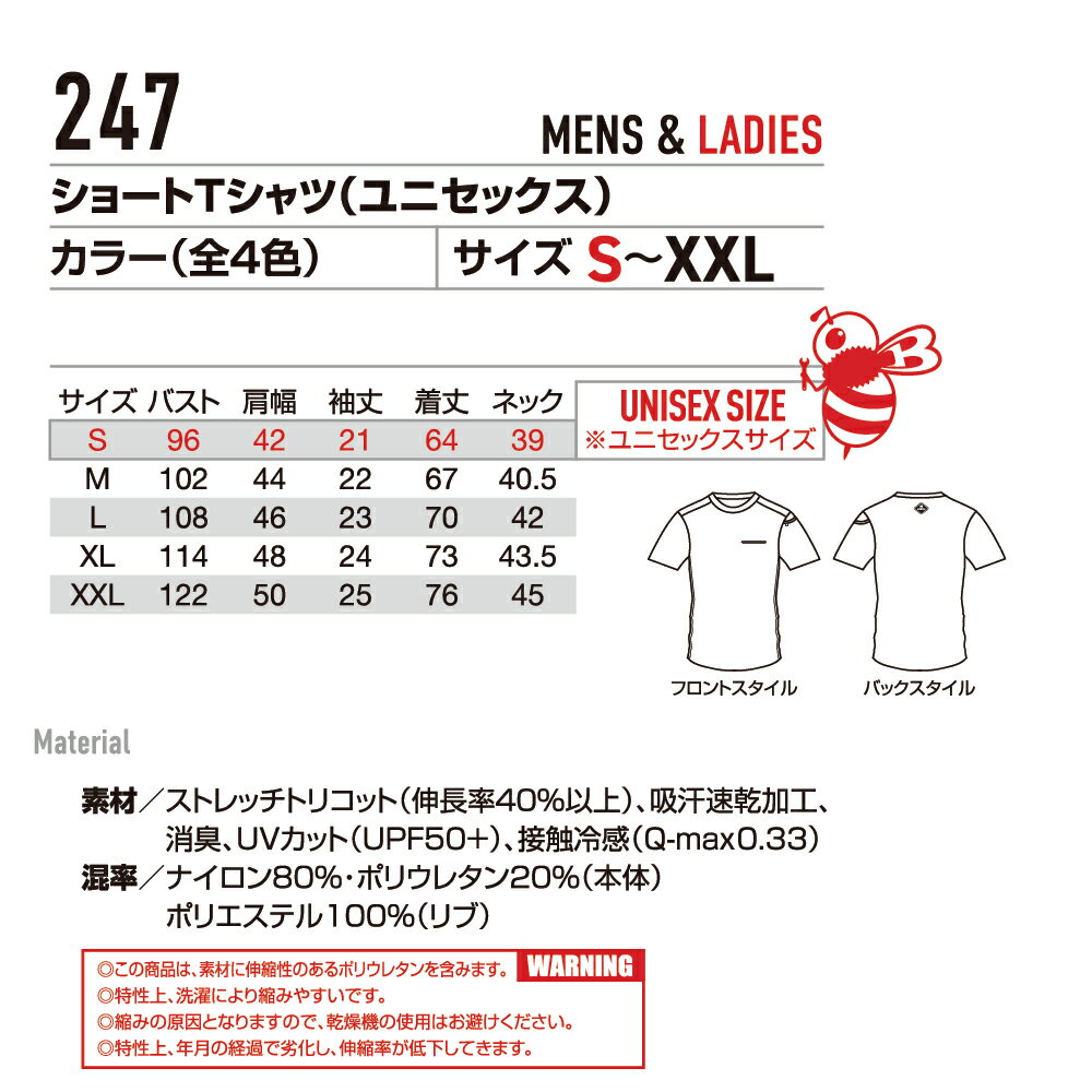 ★★バートル【BURTLE】ショートTシャツ 247 軽量で伸縮性に優れたストレッチ素材 胸と片口袖にポケット装備 男女ユニセックス 【2024春夏新商品】【メール便送料無料】
