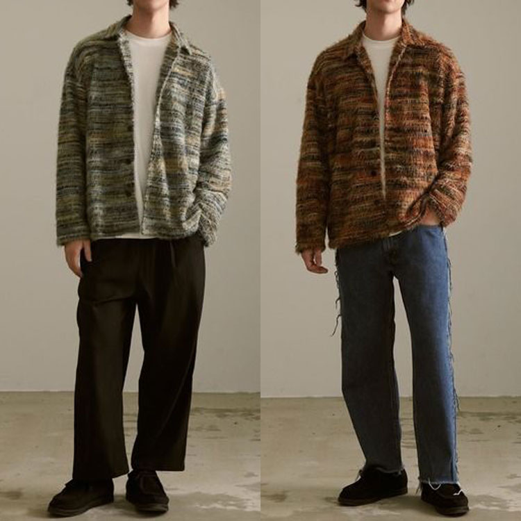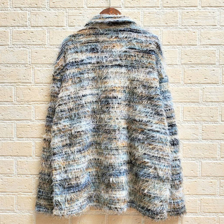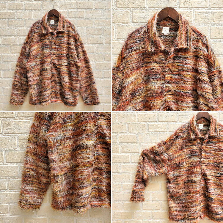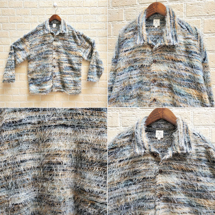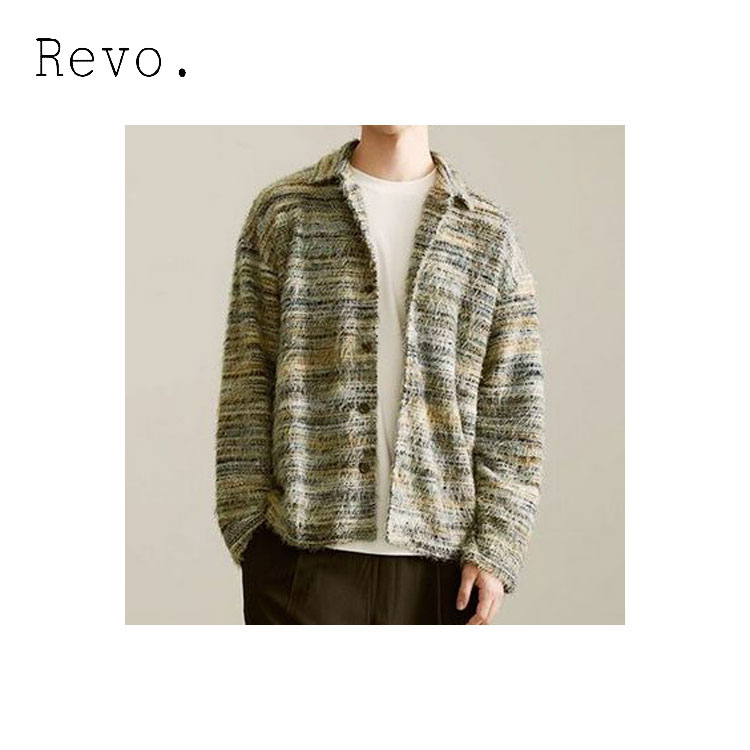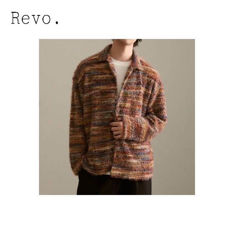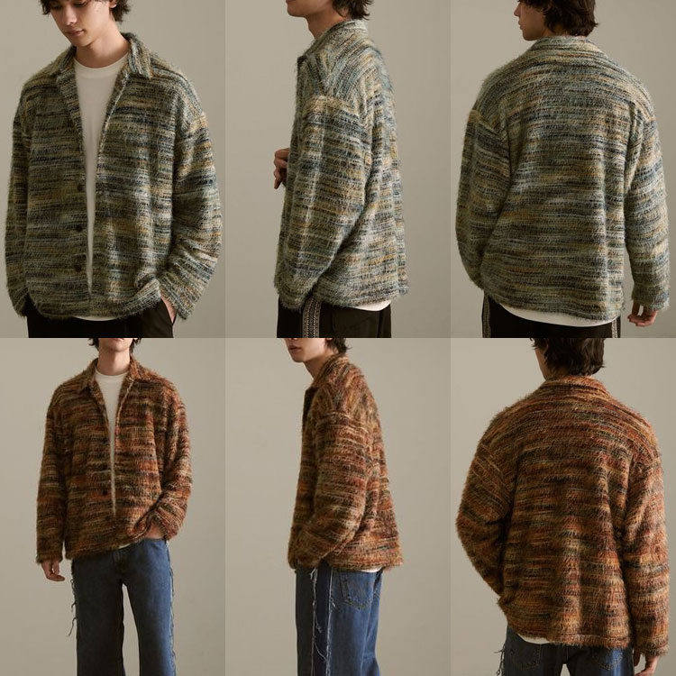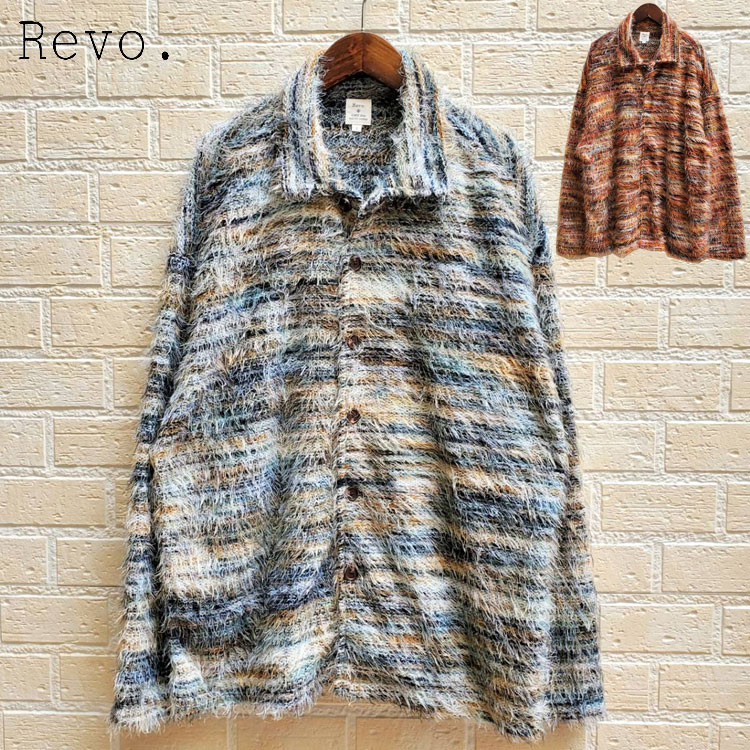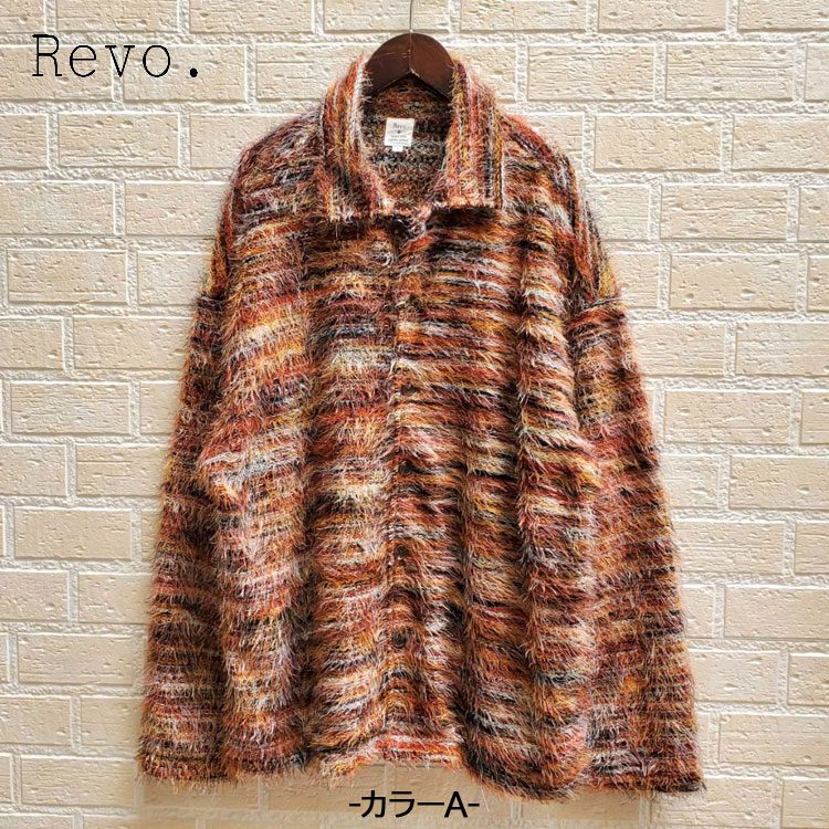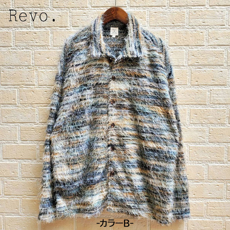 Revo. ミックスボーダーニット カーディガン ルーズフィット モヘアライク ニット グラデーション ミックスカラー シャギーニット シャツカーディガン ニットカーディガン マルチボーダー 通勤 通学 旅行 イベント プレゼント