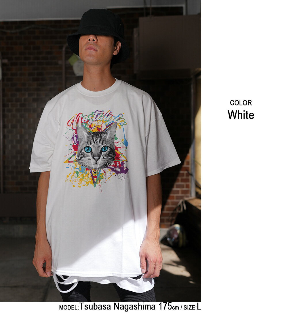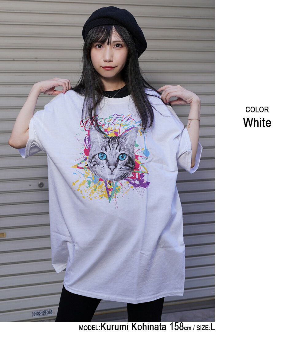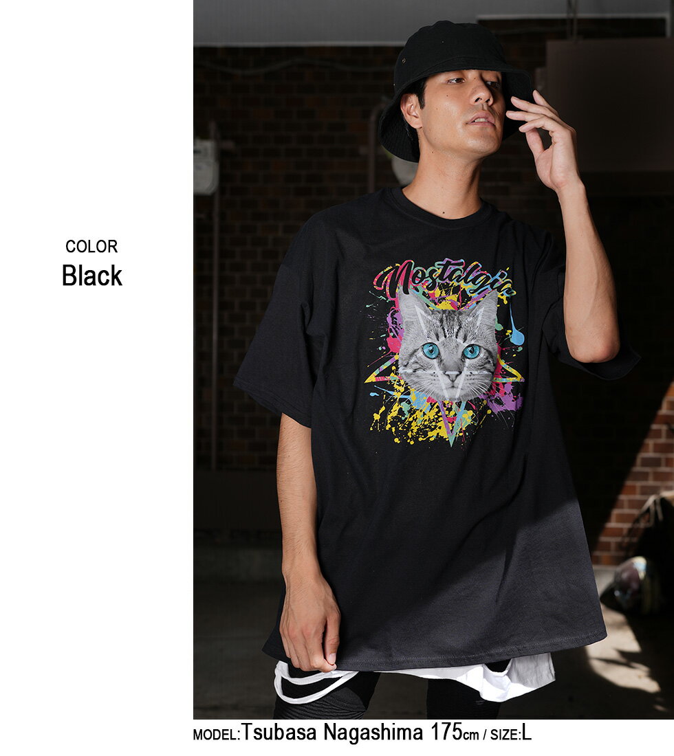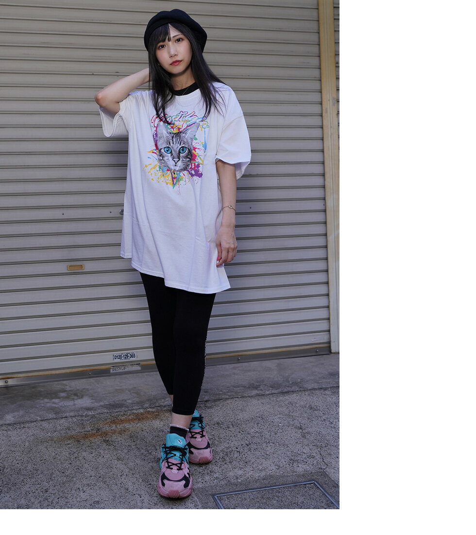 【マラソン期間★全品15%OFFクーポン】DIP CATビッグTシャツ(男女兼用)■トップス ロンT ロングtシャツ ろんt 長袖 五分袖 5分袖 tシャツ 長袖Tシャツ 猫 ネコ ねこ キャット cat ストリート 大きいサイズ ビックシルエット 病み メンズ レディース ユニセックス