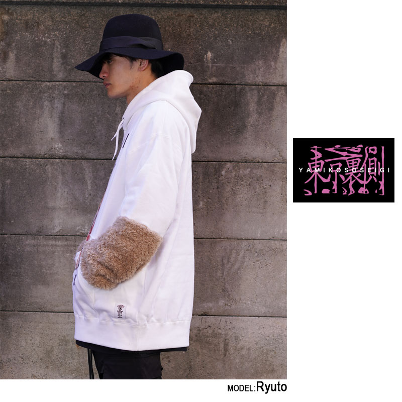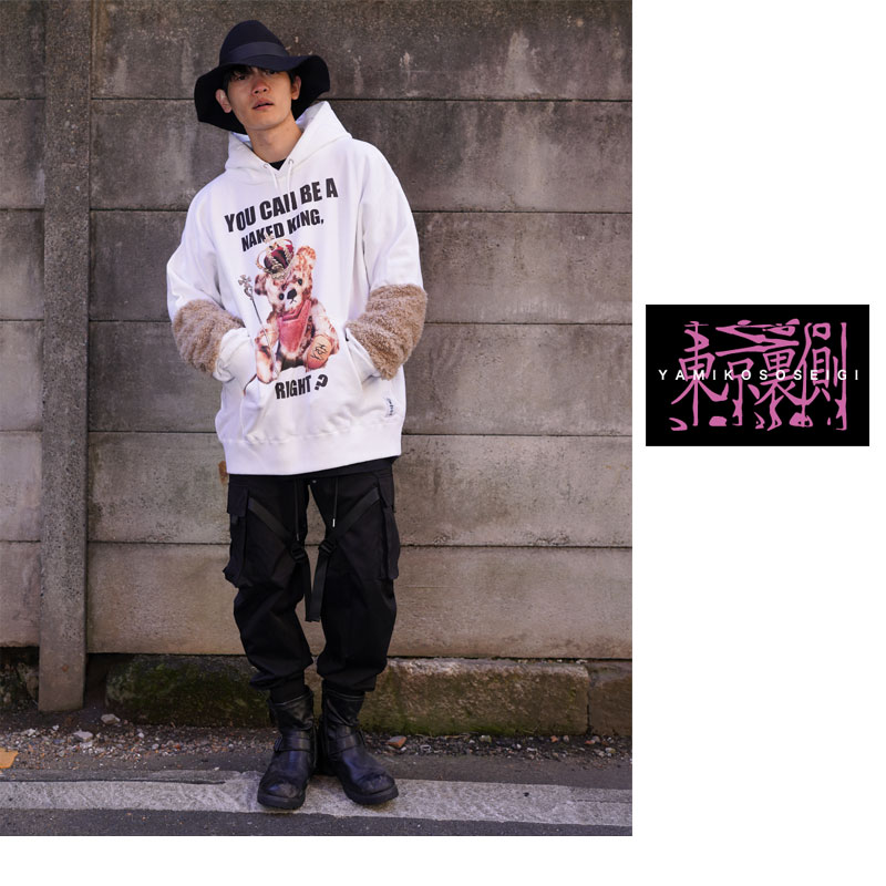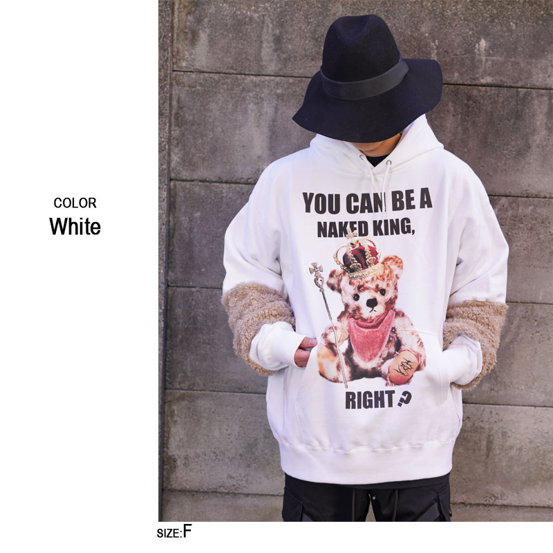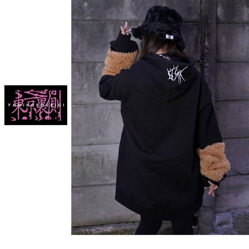 『東京裏側』King Bear袖ファー付きビッグパーカー(男女兼用)■ トップス アウター 長袖 パーカー パーカ トレーナー 長袖パーカー スウェット ストリート おしゃれ やみかわ レディース ユニセックス 病みかわ 病みかわいい 病み系 病み 闇 大きいサイズ オーバーサイズ