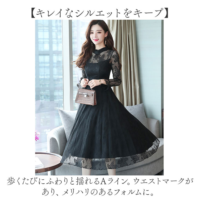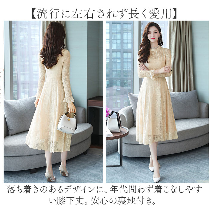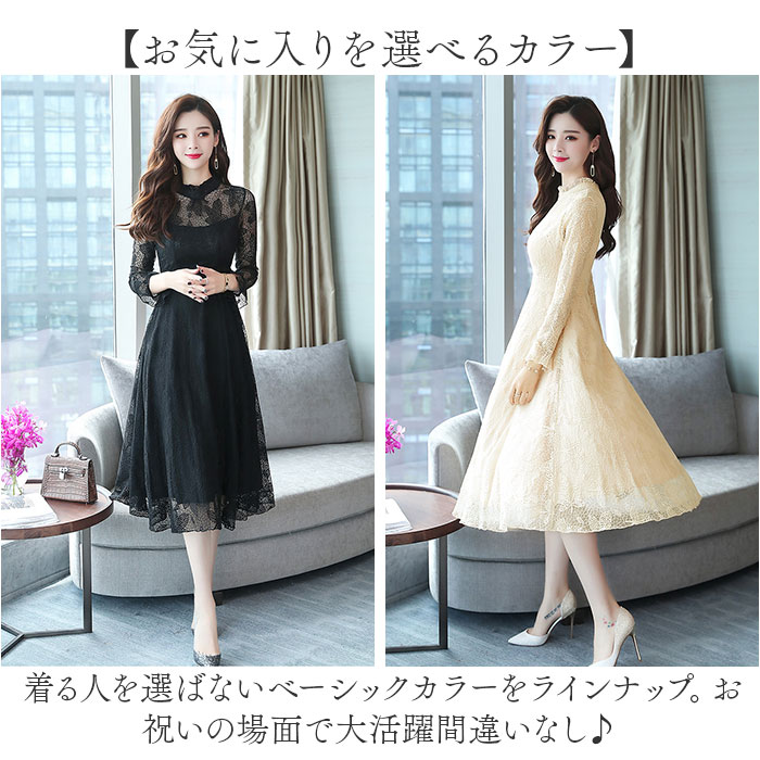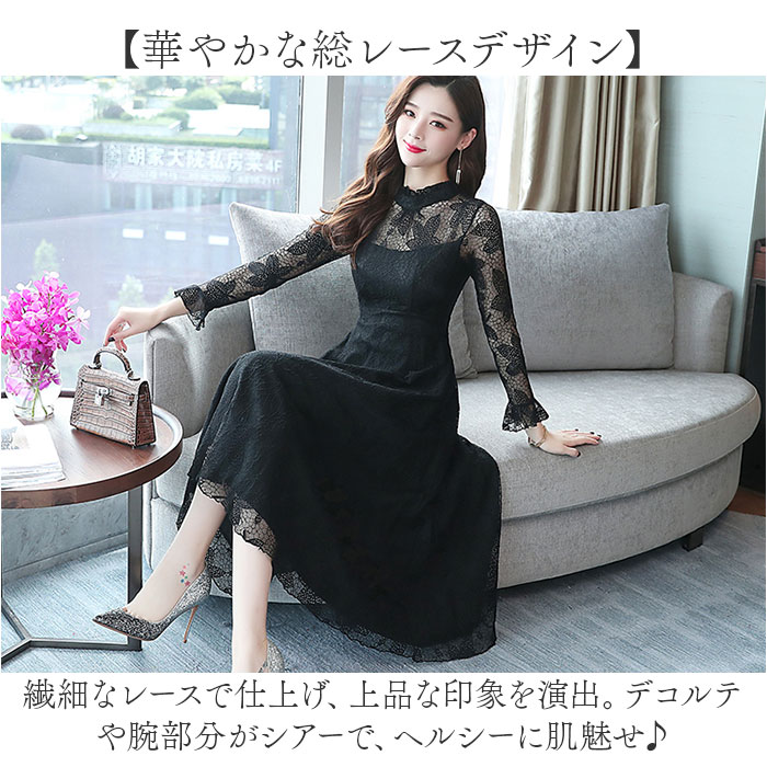 パーティードレス レディース ドレス 好評 ワンピ ワンピース フォーマルワンピ フォーマルワンピース 総レース レース フォーマル ひざ下 膝下 膝丈 シースルー 透け パーティー 結婚式 お祝い かわいい 可愛い おしゃれ オシャレ