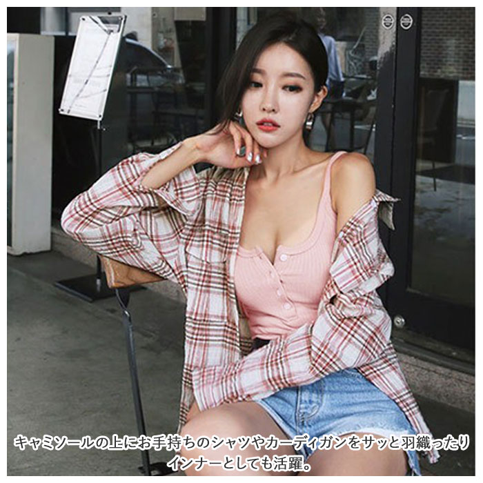 セクシー キャミソール 通販 レディース トップス 大きいサイズ 20代 30代 タンクトップ ボタン付 バスト ヘンリーネック 胸元 デコルテ 強調 韓国 春 夏