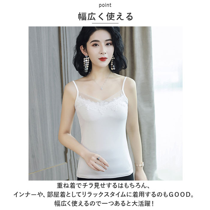 キャミソール レース エレガント 通販 ノースリーブ トップス タンクトップ V ネック レイヤード 重ね着 シャツ インナー レディース セクシー スリム 夏 かわいい おしゃれ 大人