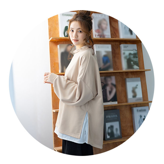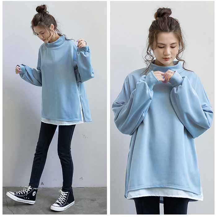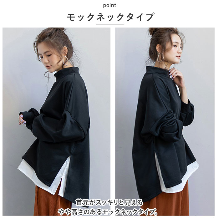 トレーナー レディース おしゃれ 通販 スウェット プルオーバー トップス 長袖 重ね着風 ボトルネック ハイネック パフスリーブ ドロップショルダー 綿 シンプル 無地 通勤 通学 カジュアル 秋 冬 チュニック かわいい カワイイ