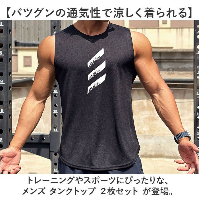 タンクトップ メンズ 通販 2枚セット ノースリーブ 袖なし 男性 速乾 吸汗 ランニングウェア トレーニングウェア ランニング 運動 ジム トレーニング 筋トレ おしゃれ オシャレ メッシュ スポーツベスト 収縮性 通気性 快適 贈り物 ギフト