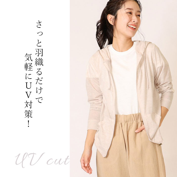パーカー レディース 薄手 通販 レディースパーカー アウター フードあり UVパーカー 長袖 ジップアップ 無地 シンプル ナチュラル おしゃれ トップス 女性 大人 快適 アウトドア キャンプ スポーツ PAGE ONE ページワン 贈り物