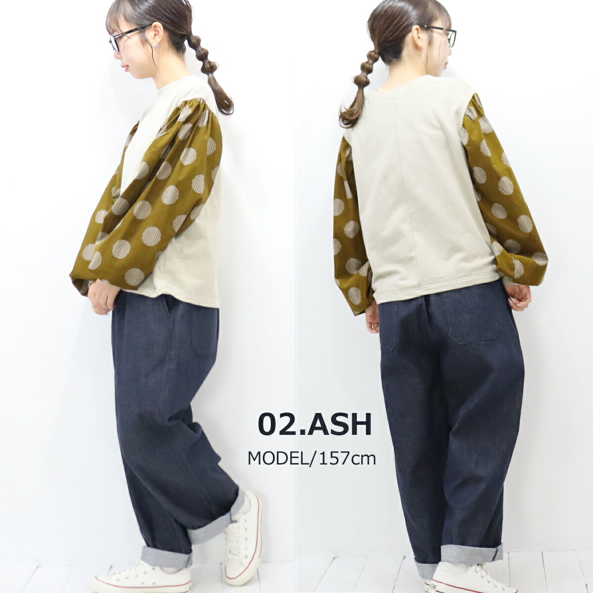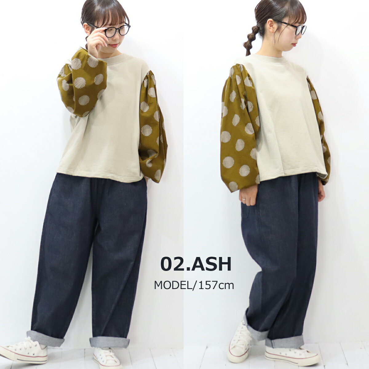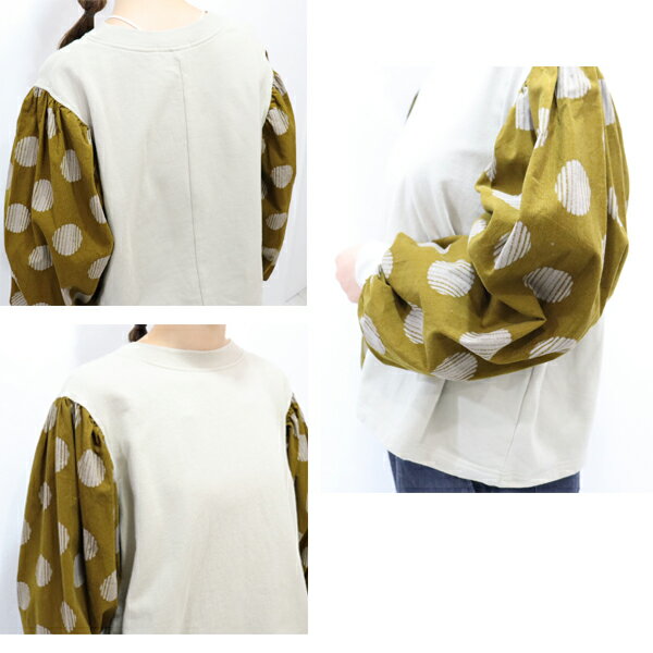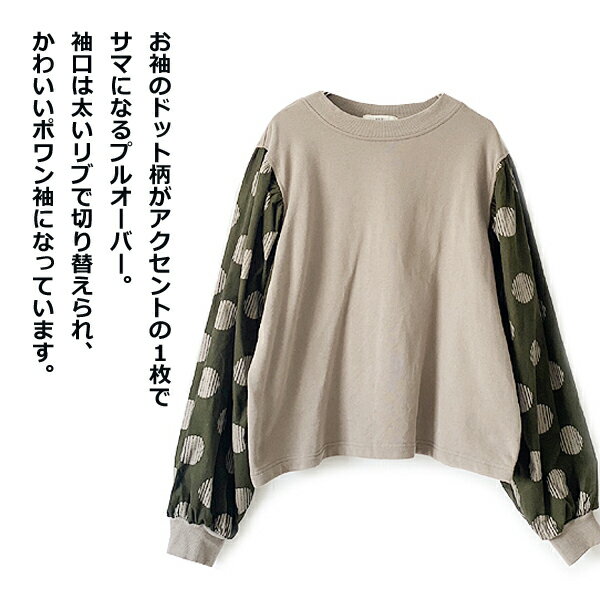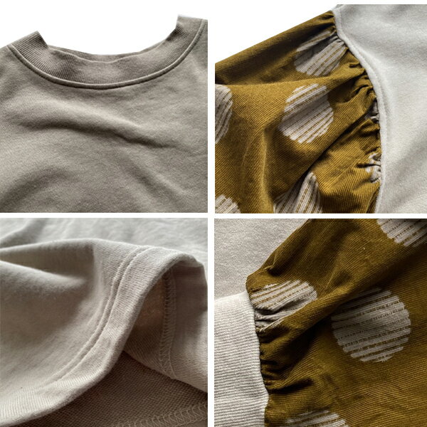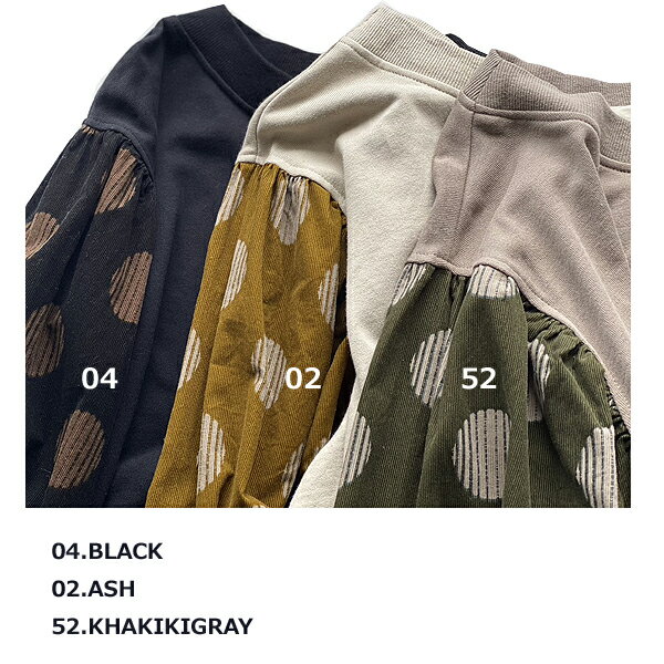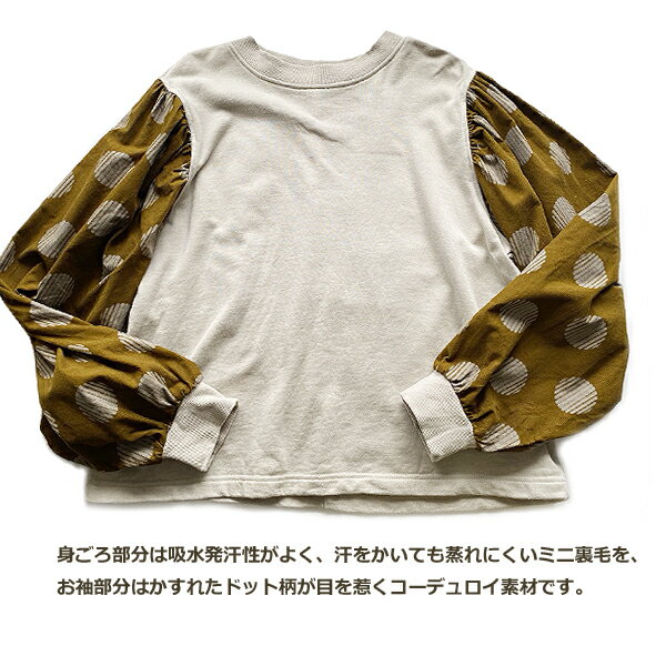 【AWアイテム クーポン対象】NARU(ナル)ミニ裏毛×水玉コール天ギャザースリーブプルオーバー