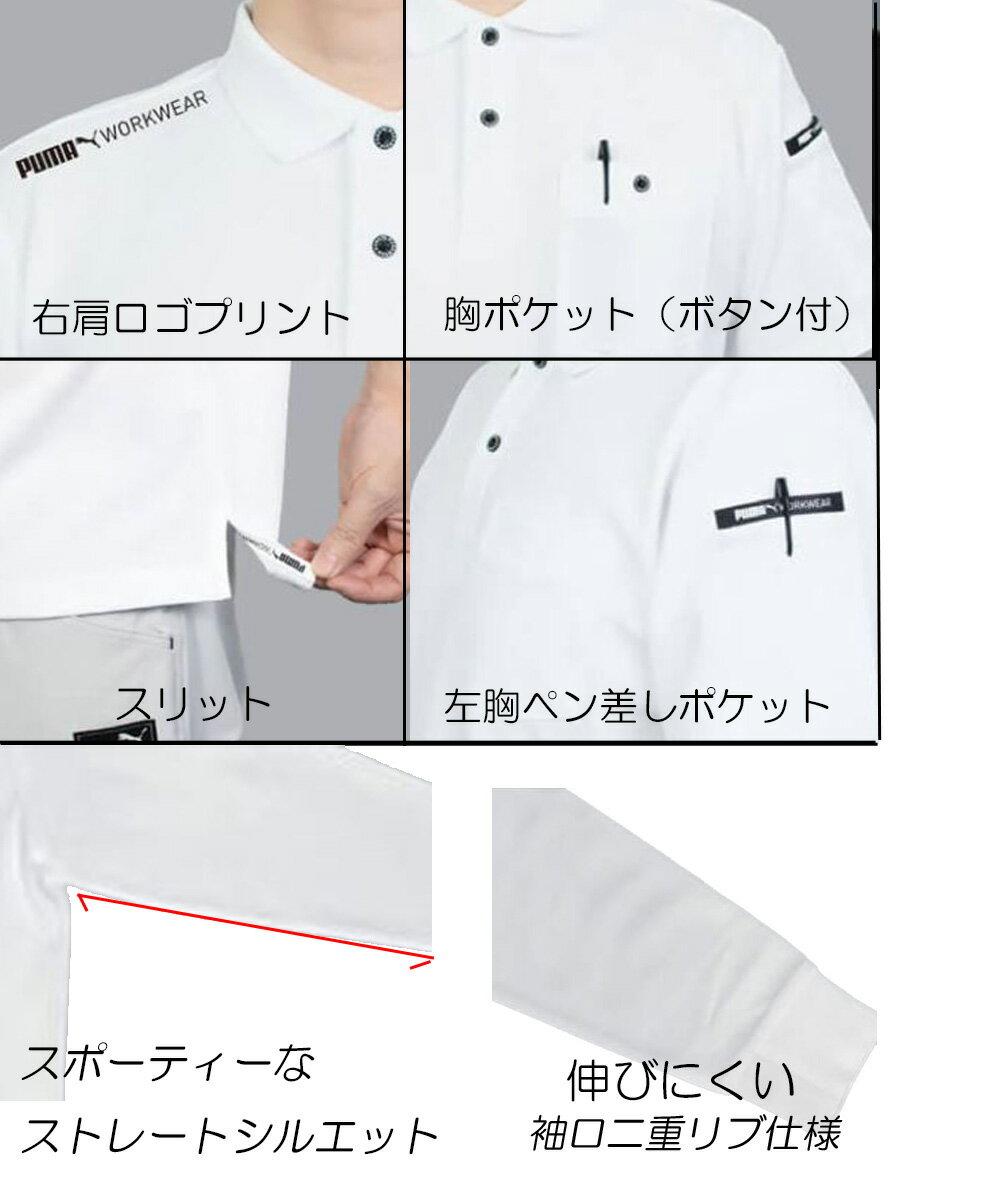 作業ウェアPUMA長袖ポロシャツ プーマ 作業服 PW-4024A PUMA WORKWEAR プーマワークウェア