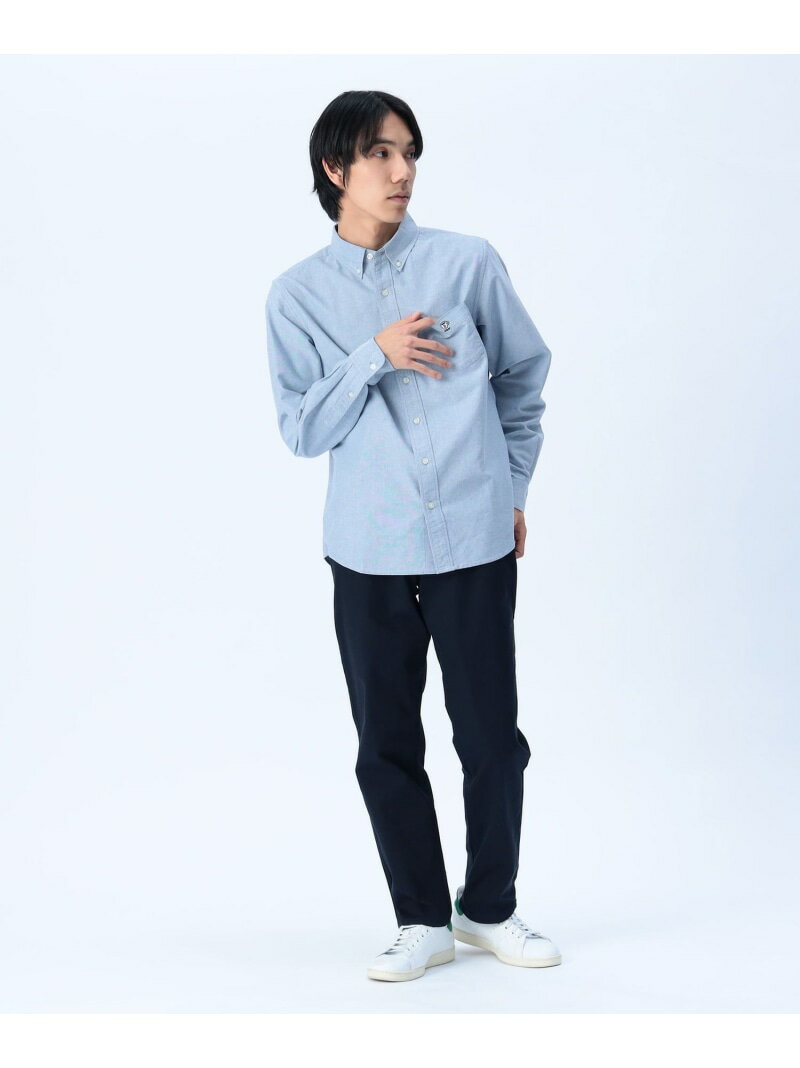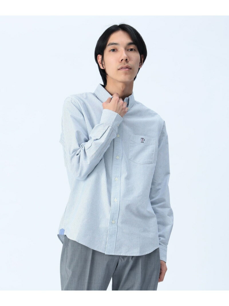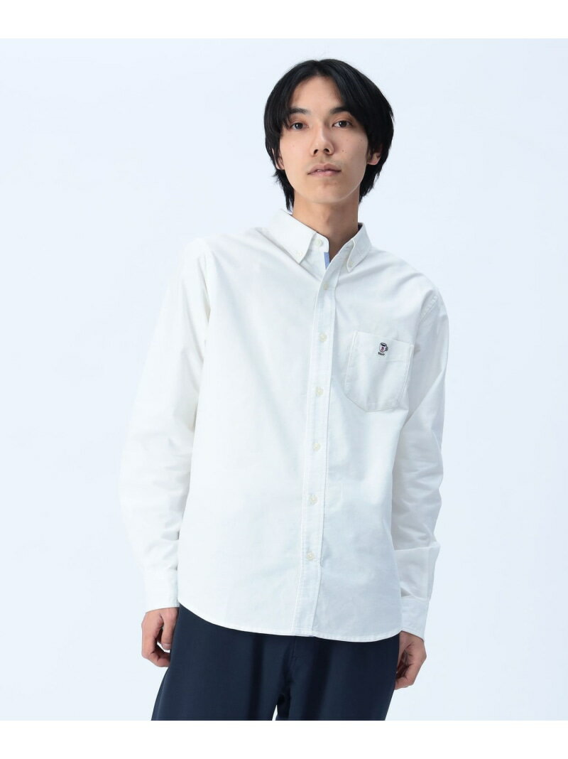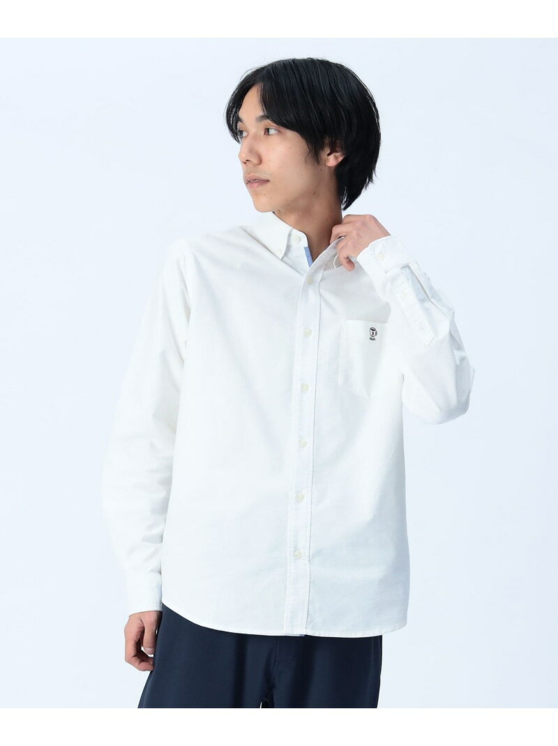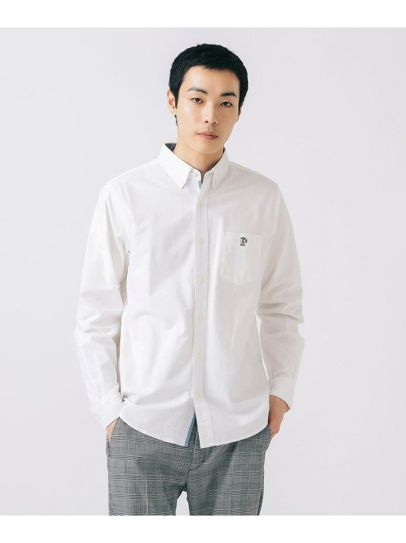 コーヒー刺繍 クールタッチ ロングスリーブ シャツ(接触冷感) BEAMS HEART MEN ビームス ハート トップス シャツ・ブラウス ホワイト ブルー【先行予約】*【送料無料】[Rakuten Fashion]