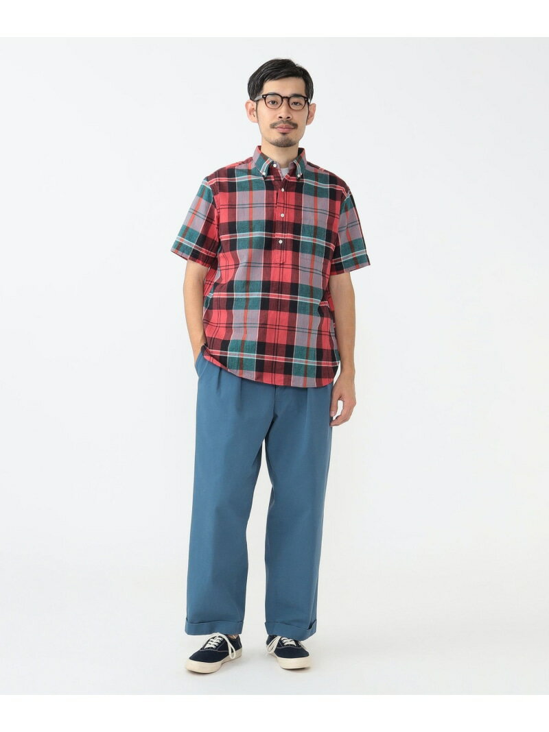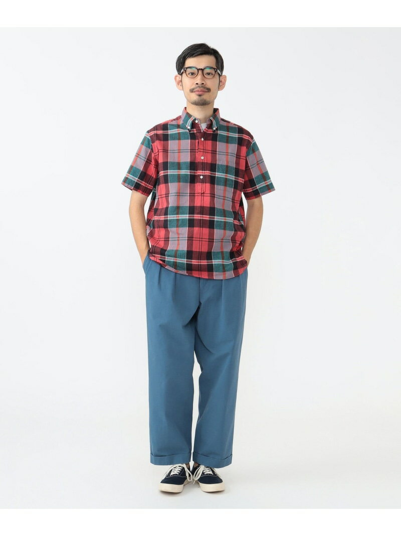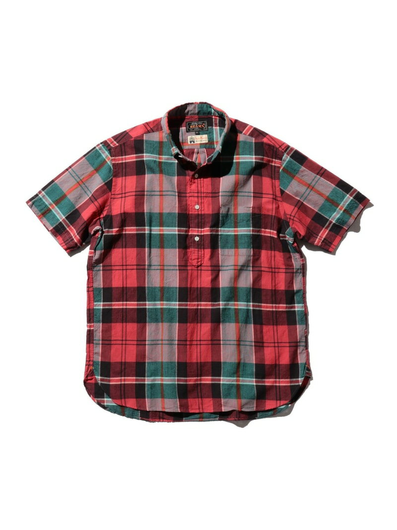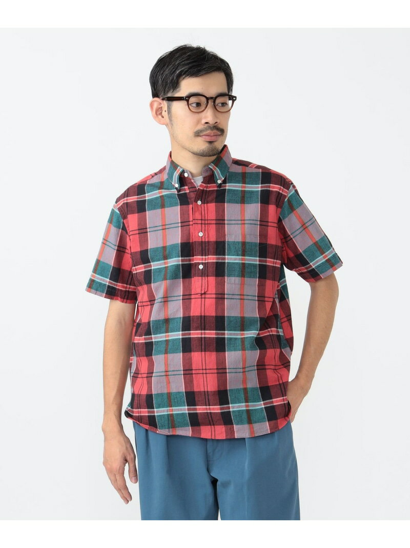 マドラスチェック 半袖 ボタンダウン プルオーバー シャツ BEAMS PLUS ビームス メン トップス シャツ・ブラウス ブルー ピンク レッド【送料無料】[Rakuten Fashion]