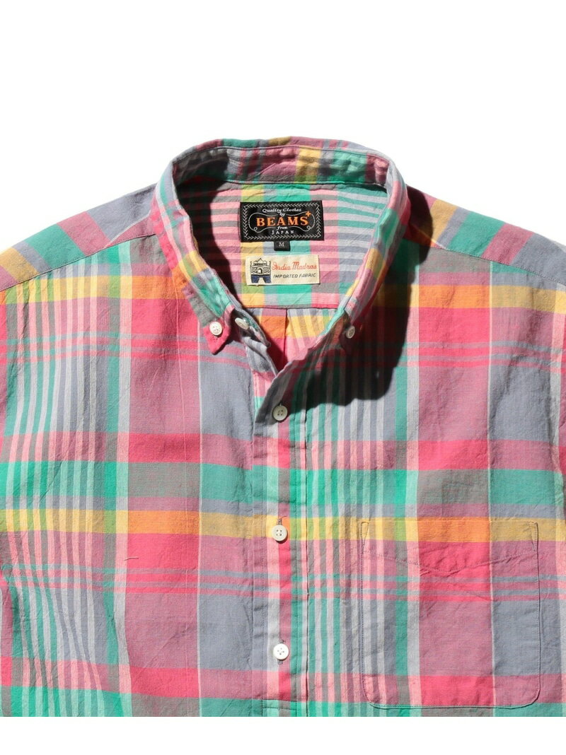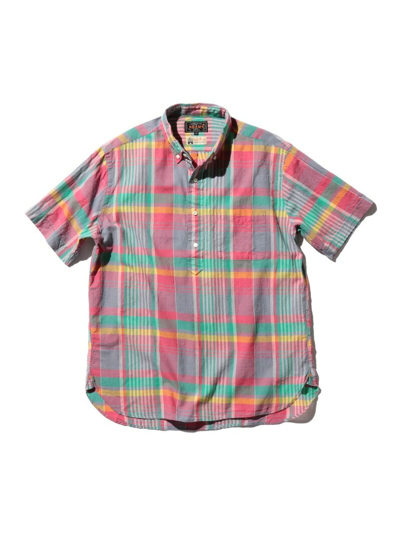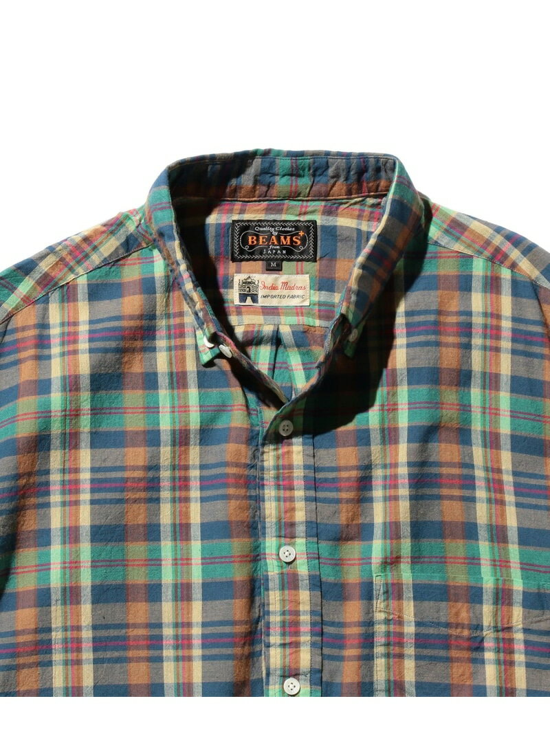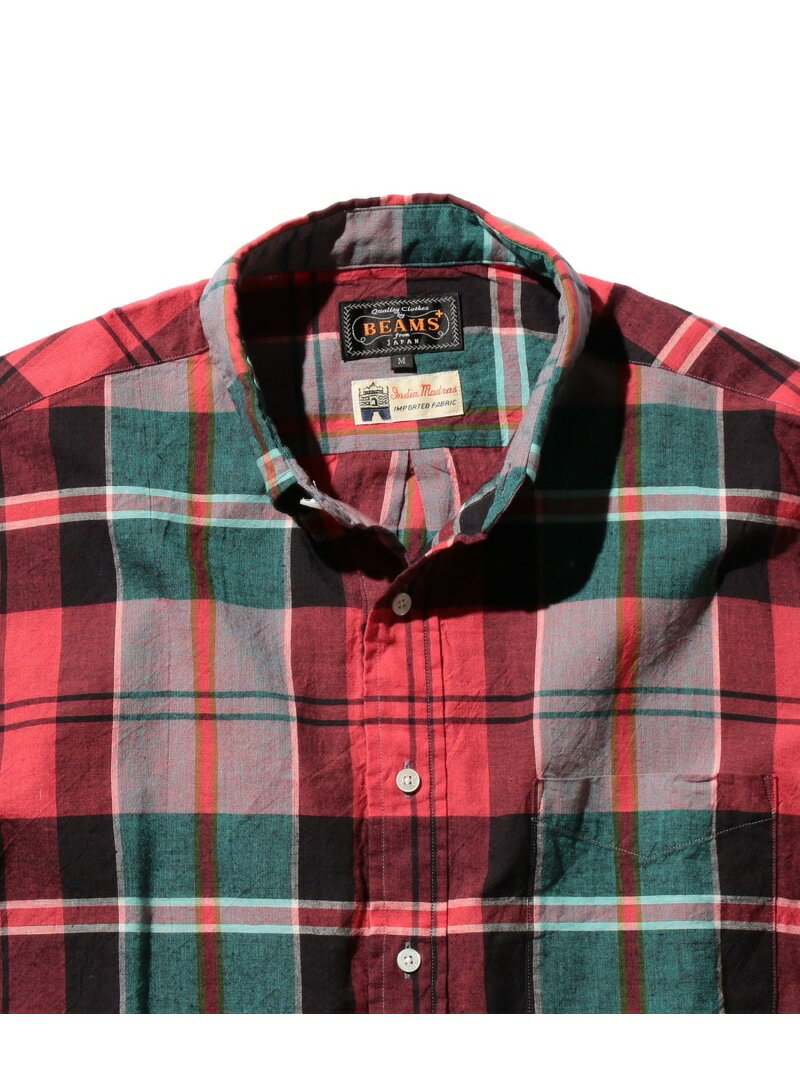 マドラスチェック 半袖 ボタンダウン プルオーバー シャツ BEAMS PLUS ビームス メン トップス シャツ・ブラウス ブルー ピンク レッド【送料無料】[Rakuten Fashion]