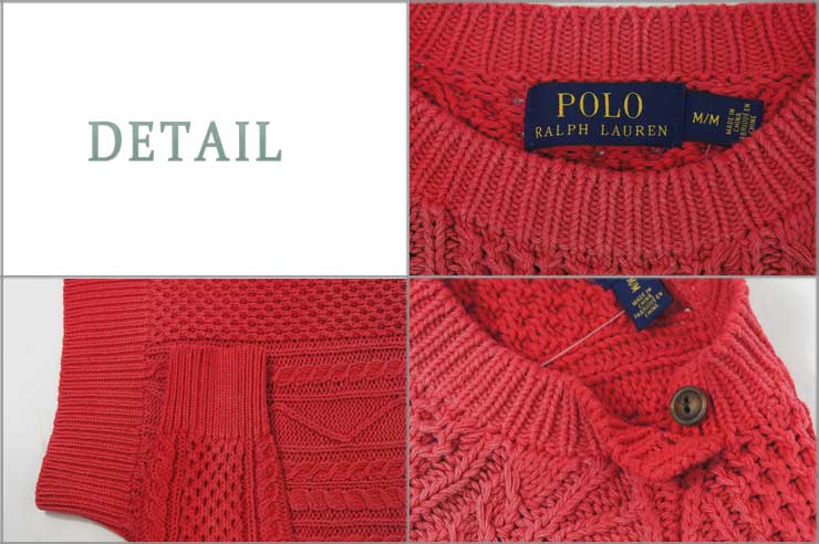 アウトレット POLO Ralph Lauren ラルフローレン ウォッシュ加工 コットン ケーブル セーター レッド