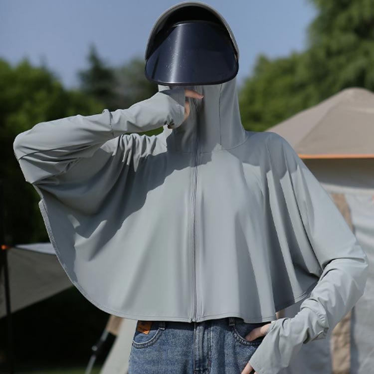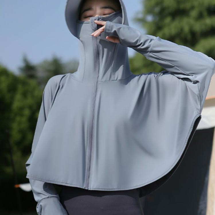 UVカット パーカー ショート ポンチョ UV 冷感 UPF50+ レディース 長袖 ショート丈 ラッシュガード マスク 指穴 手袋 つば バイザー サンバイザー 取り外し可能 トップス アウター フード付き 薄手 吸汗 速乾 UVケア 360度紫外線対策 熱中症対策 日焼け防止服 体型カバー 夏