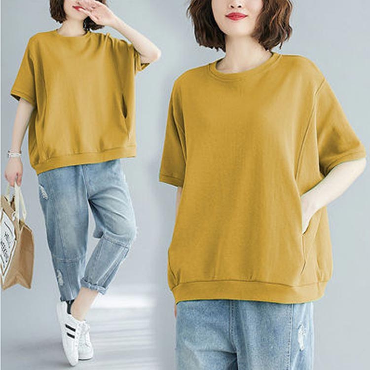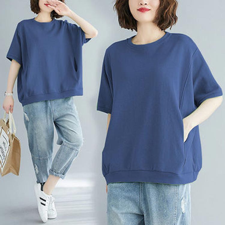 半袖 五分袖 ポケット付き ビッグシルエット おしゃれ レディース Tシャツ プルオーバー スウェット トップス トレーナー クルーネック 無地 ゆったり シンプル 5分袖 大きいサイズ ドルマン 体型カバー カジュアル 五分袖