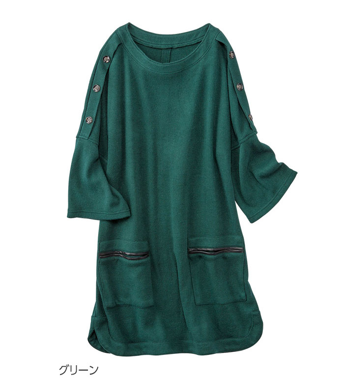 【15周年記念15%OFFクーポン】 チュニック ウール入りカットソー素材デザインチュニック(M〜5L) ミセス ファッション シャツ ブラウス 長袖 体型カバー 大人可愛い プチプラ目玉 ゆったり 大きいサイズ 40代 50代 Belluna ベルーナ