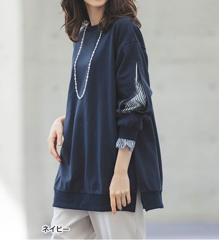 \最大2000円OFFクーポン/ チュニック M L LL 3L 袖スリットカットソーチュニック(M〜3L) ベルーナ ラナン RANAN 30代 40代 50代 レディース 秋冬 秋冬服 トップス
