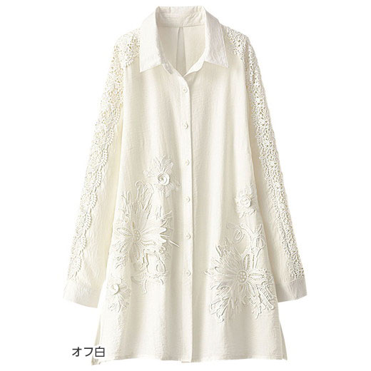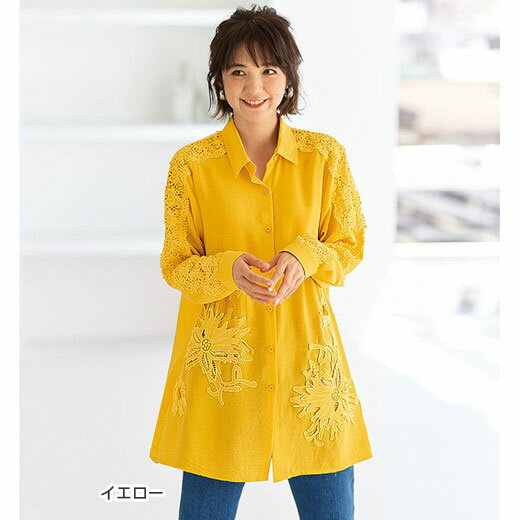 \クーポン配布中/≪16%OFF≫チュニック 流れる花レースシャツチュニック(M〜LL) レディースファッション ミセス 大人 トップス 40代 50代 Belluna ベルーナ