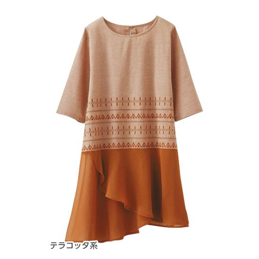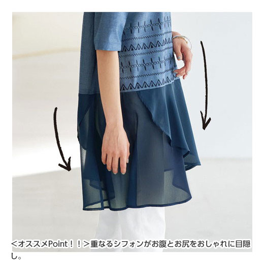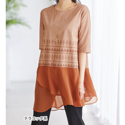 \まとめ買い最大25%OFFクーポン/ Belluna(ベルーナ) チュニック ひんやり!ふわっと揺れる異素材切替刺しゅうチュニック(M〜LL) レディースファッション ミセス 大人 盛夏 トップス 40代 50代 母の日