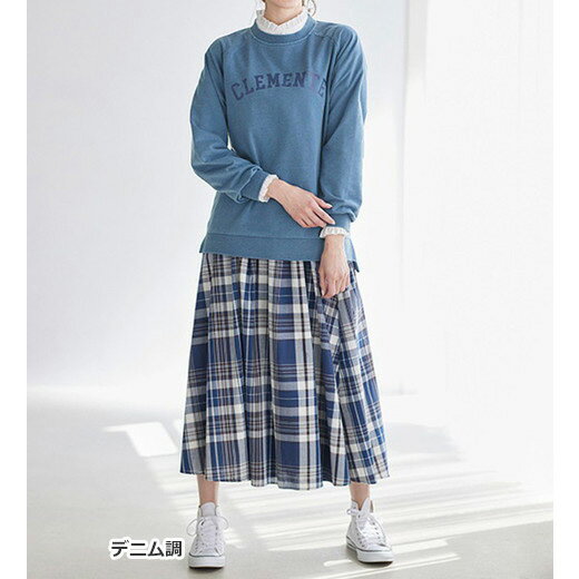トレーナー ビンテージ風素材ロゴデザイントレーナー(3L〜5L) ベルーナ Belluna 40代 50代 60代 レディース ミセス 大人 秋 秋服 トップス 楽ちん 母の日