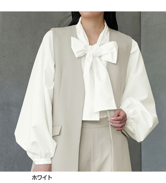 ブラウス M L LL 3L ボリュームボウタイブラウス(M〜3L) ベルーナ belluna 40代 50代 60代 ミセス 大人 レディース RANAN ラナン 秋冬 秋冬服 トップス