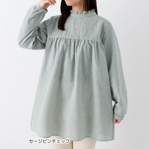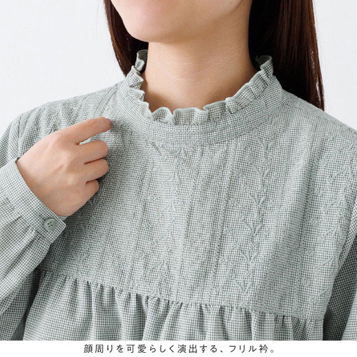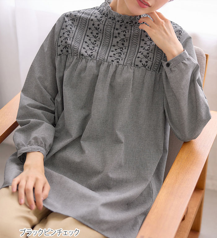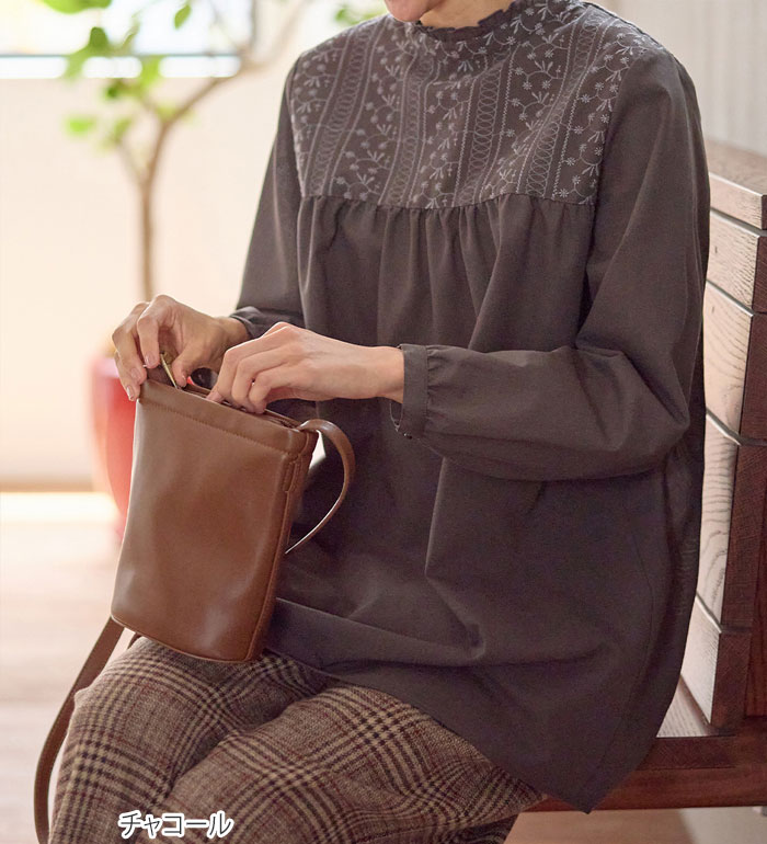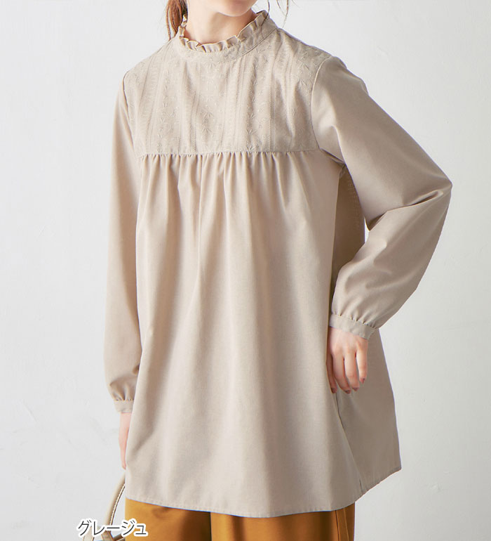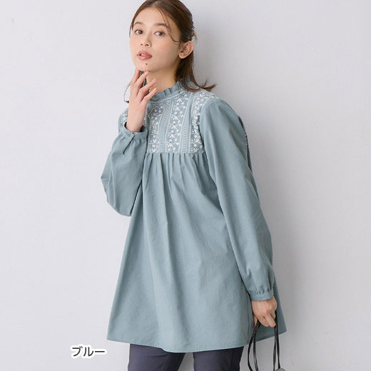 チュニック パッと華やぐ繊細刺しゅうのフリル衿チュニックブラウス(M~3L) レディース ファッション レディース Viola e Viola ヴィオラ 24春 春服 トップス