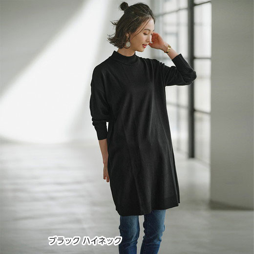 チュニック 【選べるネック】洗える!カシミヤタッチニットチュニックワンピース(M〜3L) 30代 Ranan ラナン ベルーナ レディース 春 春服 トップス