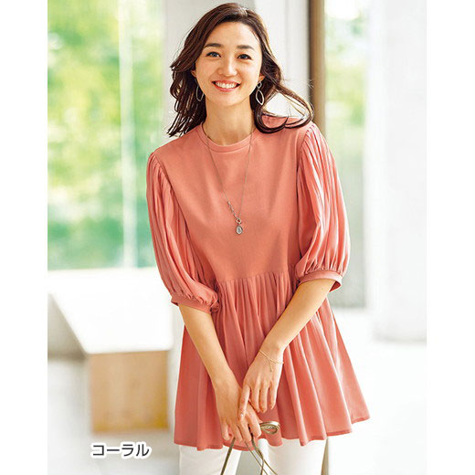 チュニック 異素材使いフレアーデザインチュニック(M~5L) ベルーナ belluna 40代 50代 60代 ミセス 大人 ファッション レディース 夏 夏服 トップス