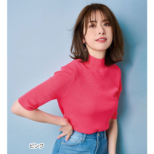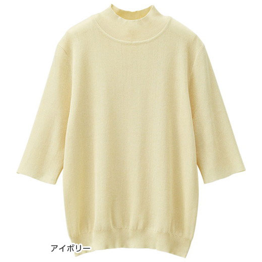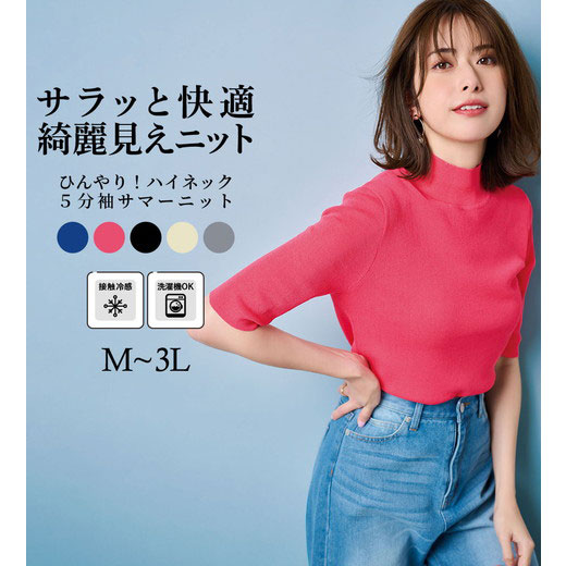 ニットプルオーバー ひんやり!ハイネック5分袖サマーニット(M~3L) レディース ファッション ラナン RANAN 夏 夏服 ニット トップス