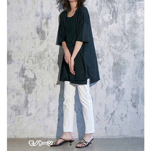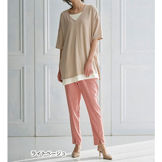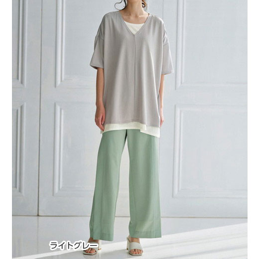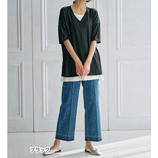 チュニックレイヤード風ニットソー半袖チュニック(S~3L) ryuryu リュリュ レディース ファッション ラナン RANAN 夏 夏服 トップス
