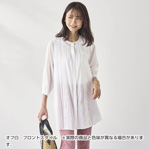 【最大2000円OFFクーポン配布中】 チュニック シアー素材マーガレットレース使いチュニック(M~5L) ベルーナ belluna 40代 50代 60代 ミセス 大人 ファッション レディース 夏 夏服 トップス