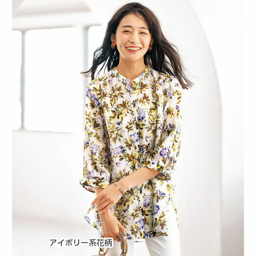 チュニック 涼感やわらか袖リボンシャツチュニック(S~5L) ベルーナ belluna 40代 50代 60代 ミセス 大人 ファッション レディース 夏 夏服 トップス