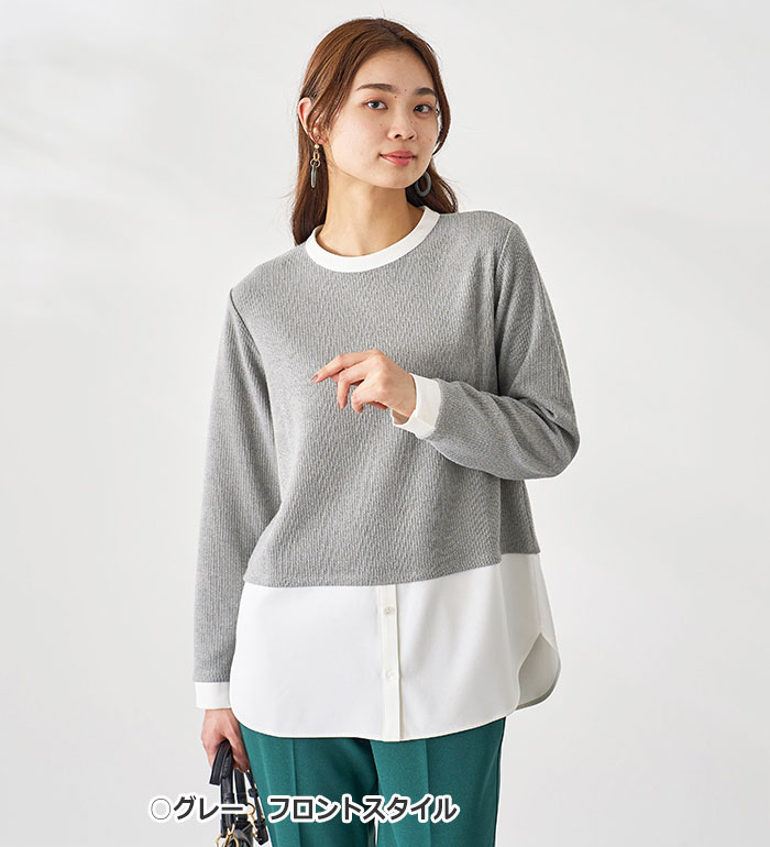 \開店15周年記念15%OFFクーポン/ 【送料無料】 チュニック M L 5L LL 3L 4L 杢調素材シャツレイヤード風チュニック(M〜5L) ベルーナ Belluna 40代 50代 60代 ミセス 大人 ファッション レディース 秋冬 秋冬服 トップス 長袖