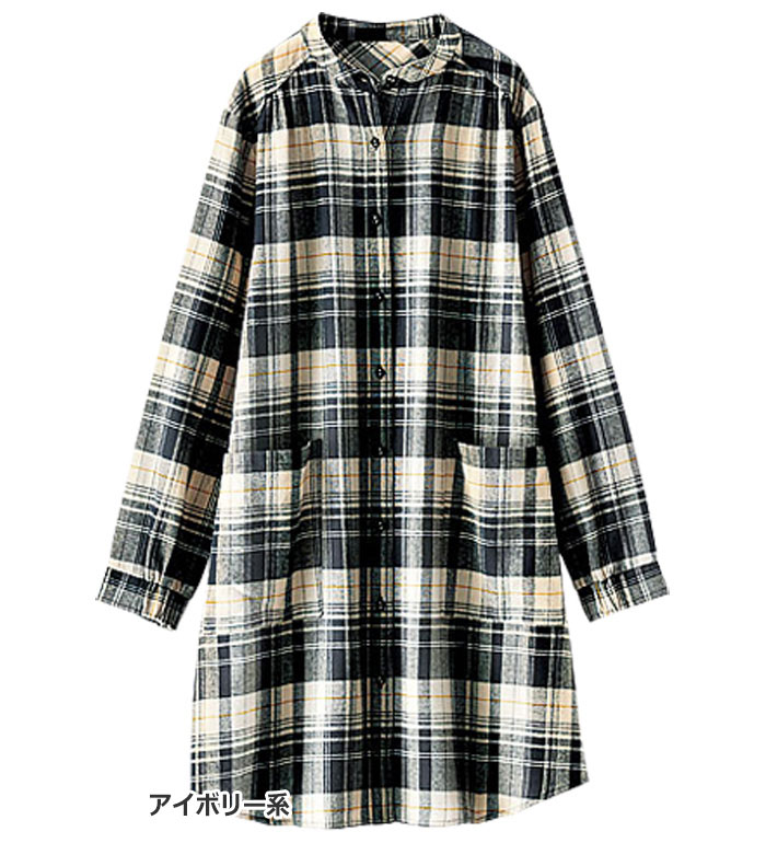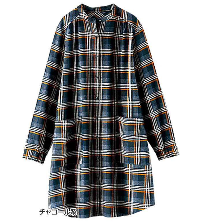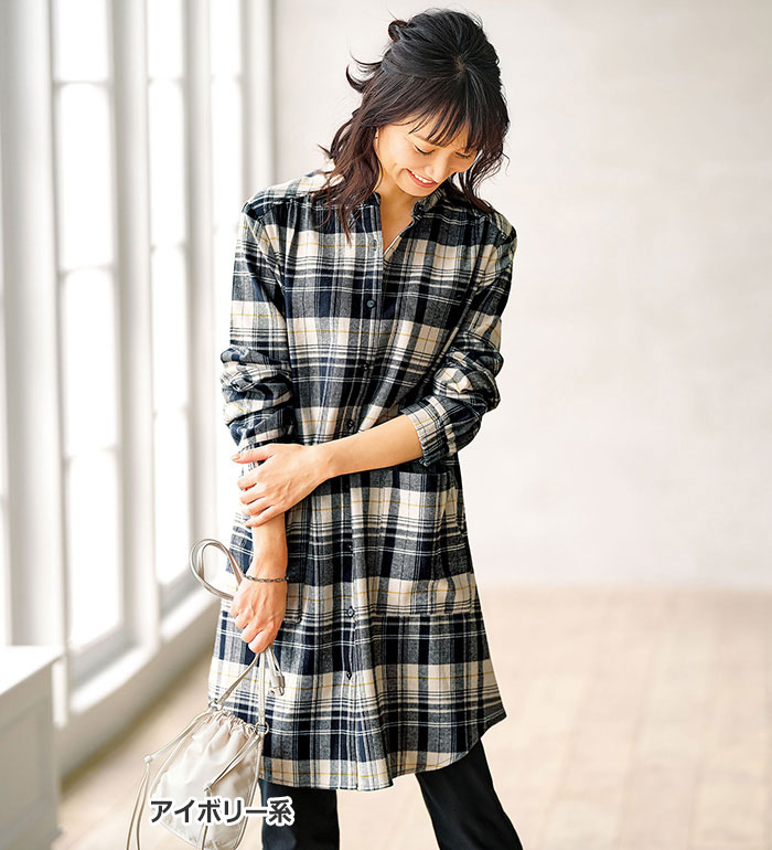 チュニック M L LL 3L 4L 5L 袖ゴム使いチェック柄シャツチュニック(M〜5L) ベルーナ Belluna 40代 50代 60代 ミセス 大人 ファッション レディース 秋冬 秋冬服 トップス