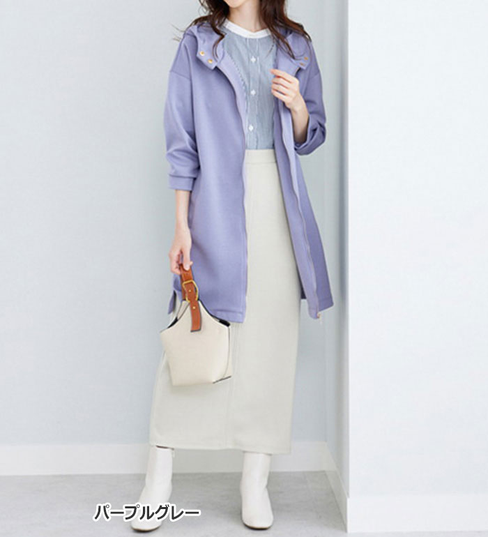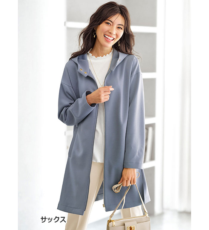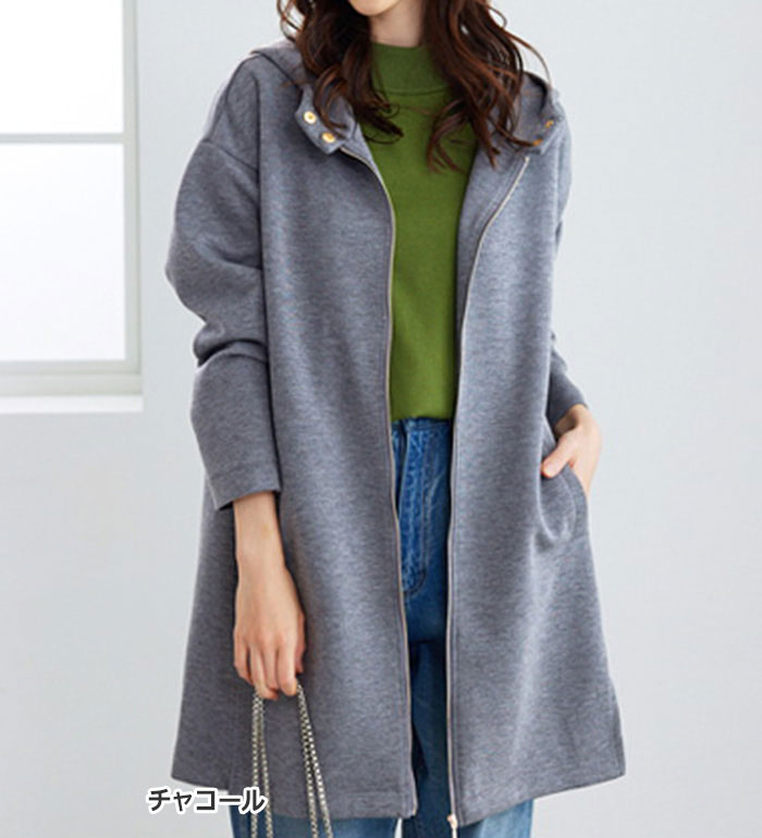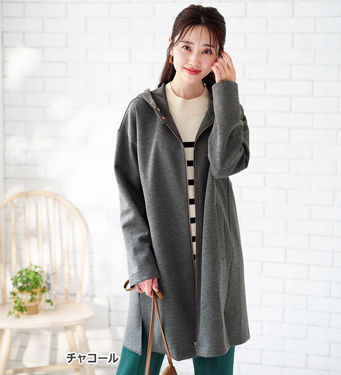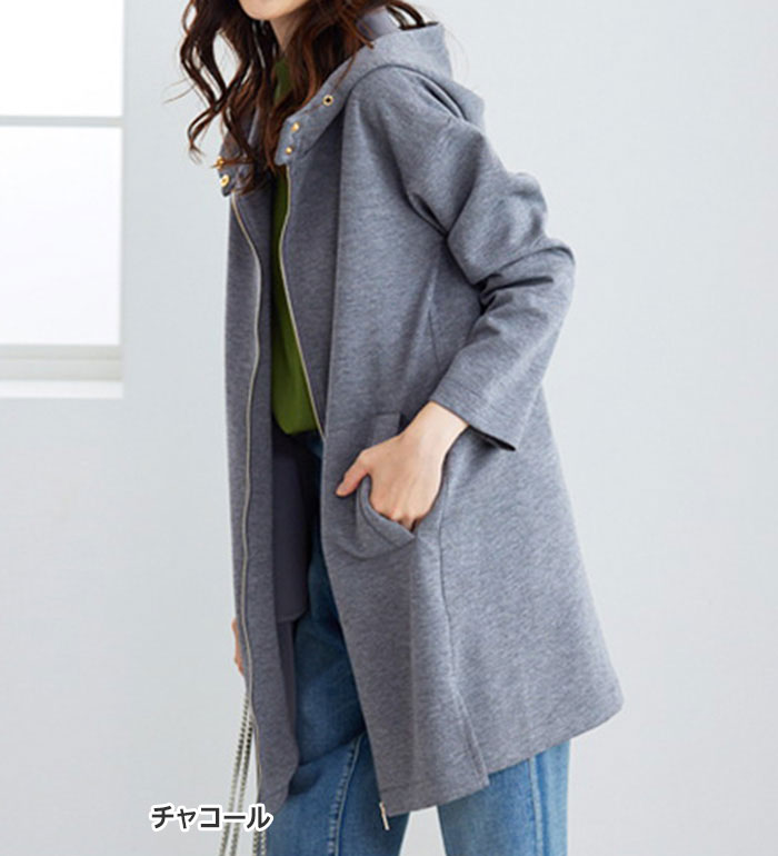 パーカー M L LL 3L 4L 5L 衿デザインロング丈パーカー(M〜5L) ベルーナ Belluna 40代 50代 60代 ミセス 大人 ファッション レディース 秋冬 秋冬服 トップス 楽ちん 長袖