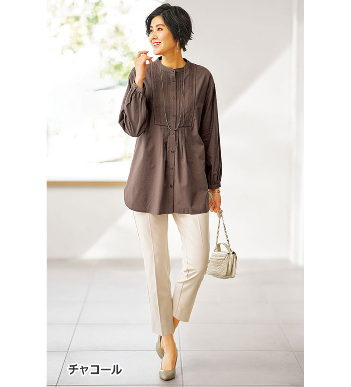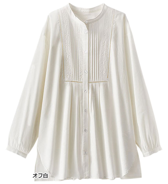 【6時間限定20%OFFクーポン配布中】 チュニック M L LL 3L 4L 5L レース×ピンタック使いシャツチュニック(M〜5L) ベルーナ Belluna 40代 50代 60代 ミセス 大人 ファッション レディース 秋冬 秋冬服 トップス 長袖
