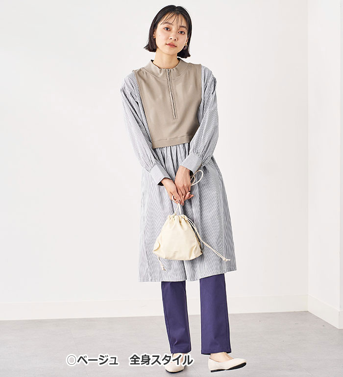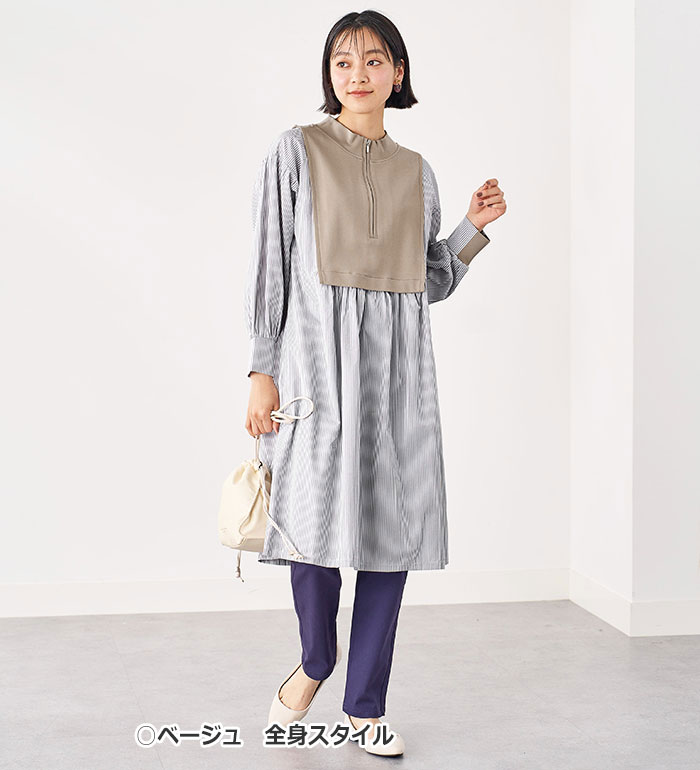 【最大2000円OFFクーポン配布中】 チュニック M L LL 3L 4L 5L ハーフジップ使いストライプ切替ワンピース(M〜5L) ベルーナ Belluna 40代 50代 60代 ミセス 大人 ファッション レディース 秋冬 秋冬服 トップス 長袖 楽天スーパーSALE