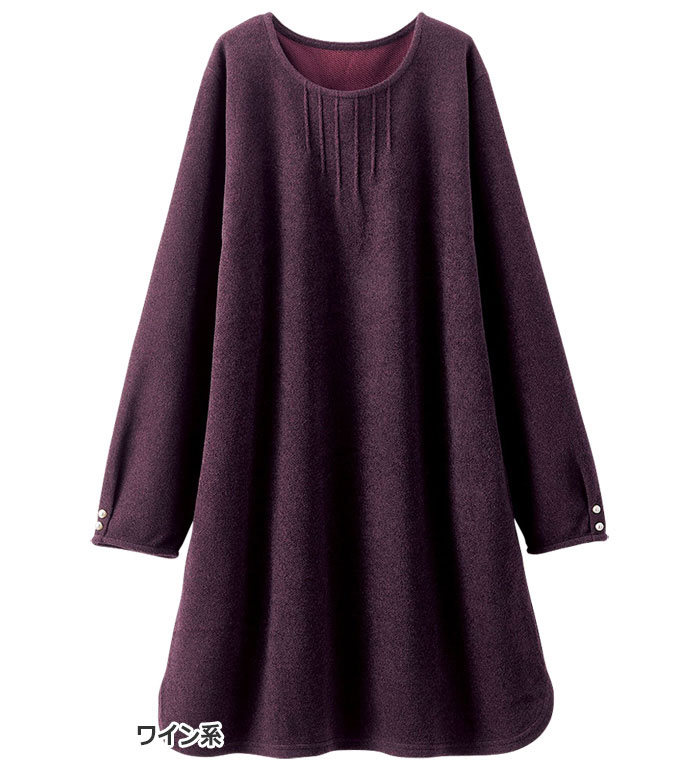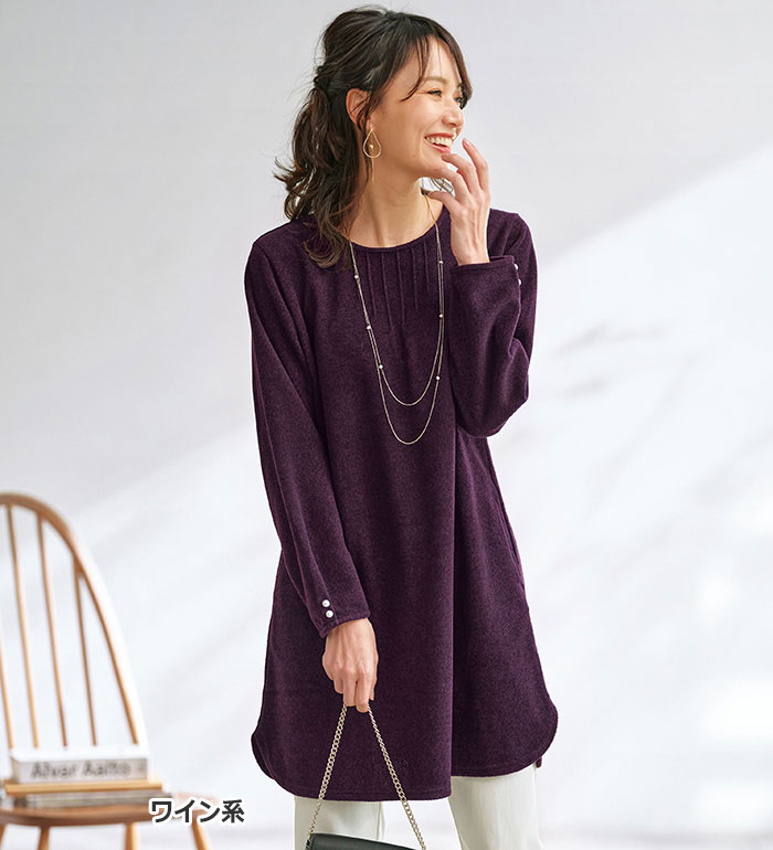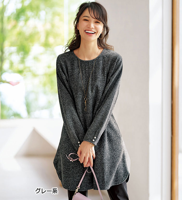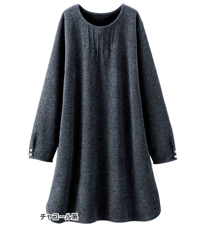 【15周年記念15%OFFクーポン】 チュニック M L LL 3L 4L 5L 袖パールボタン付ツイード調ワンピース(M〜5L) ベルーナ Belluna 40代 50代 60代 ミセス 大人 ファッション レディース 秋冬 秋冬服 トップス