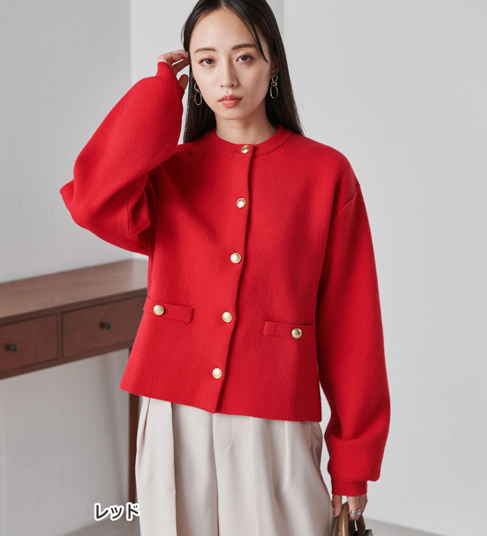 ニットカーディガン 【ムースタッチ】洗える!ゴールド調ボタンニットカーディガン(M〜LL) ベルーナ belluna 40代 50代 60代 大人 レディース ラナン RANAN 秋冬 ニット カーディガン 羽織り