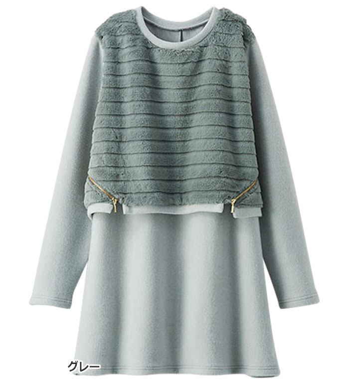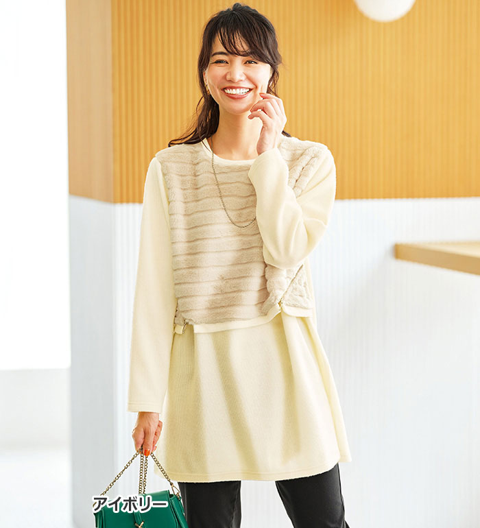 \6時間限定15%OFFクーポン/ ※11/27(水)1:59迄 チュニック M L LL 3L 4L 5L サイドジッパー付ファー切替チュニック(M〜5L) ベルーナ belluna 40代 50代 60代 ミセス 大人 レディース 冬 トップス