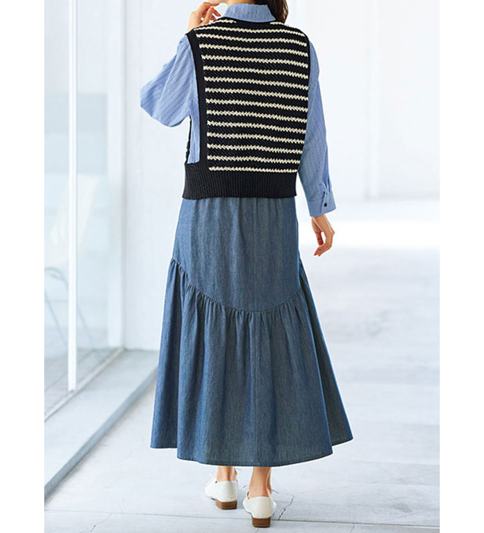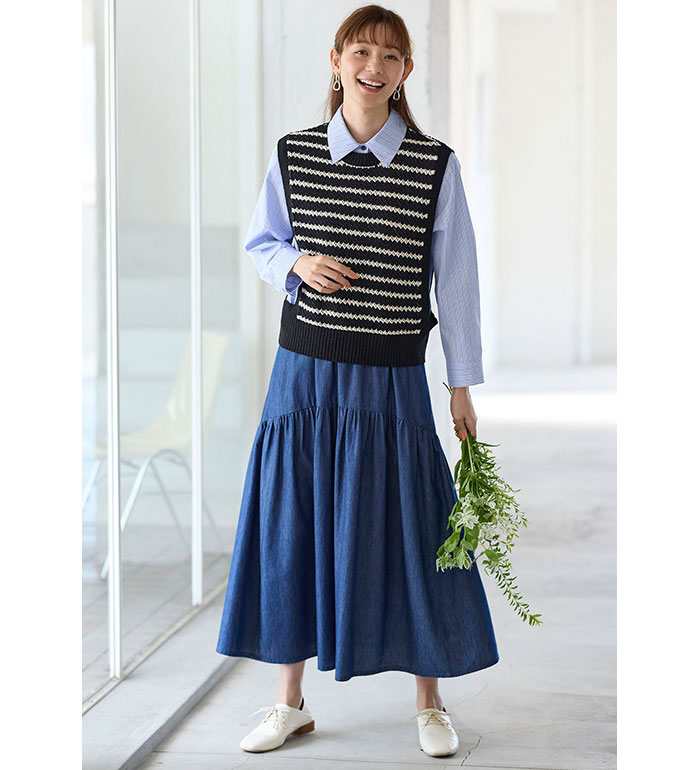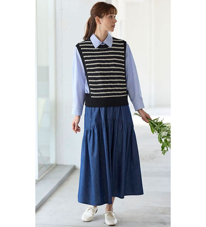 ニットベスト レディース ボーダーを上品に着こなすニットベスト 2025夏 ベルーナ belluna M-5L