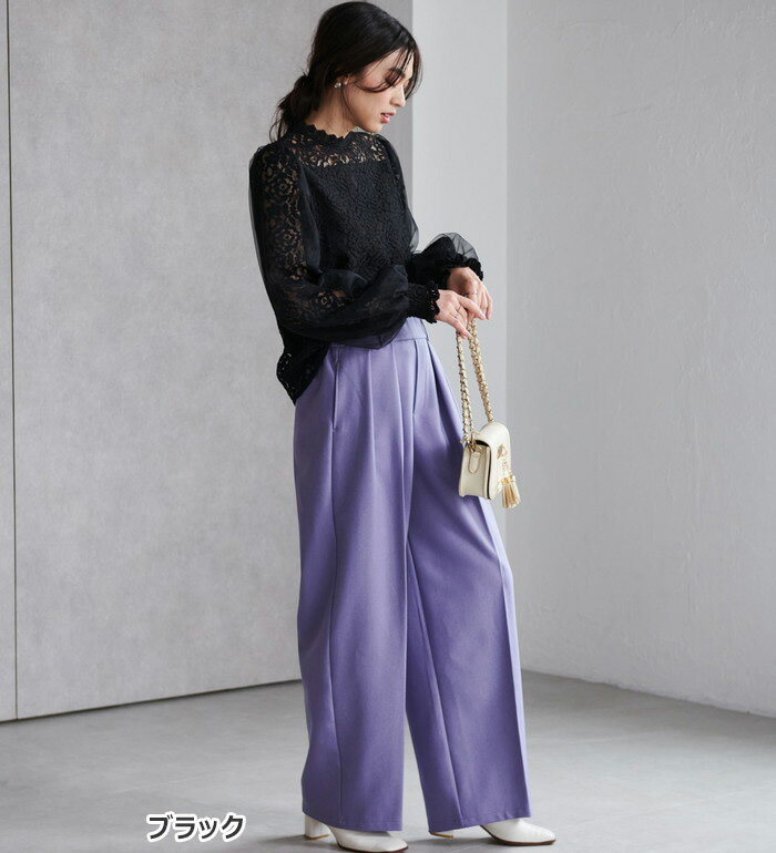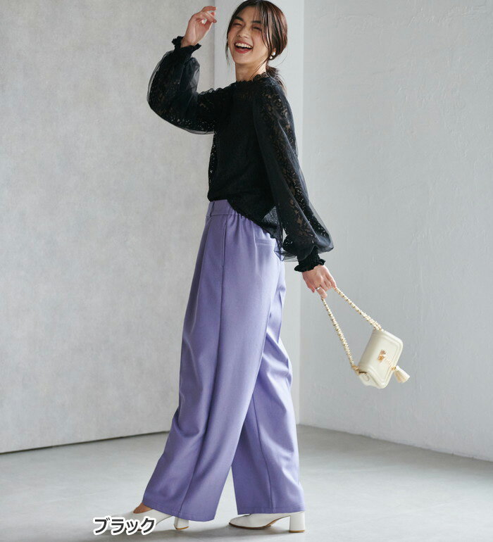 \開始4時間限定20%OFFクーポン/ ブラウス M L LL 3L チュールドッキングフラワーレースキャンディースリーブブラウス M-3L 2025春 レディース RANAN ラナン