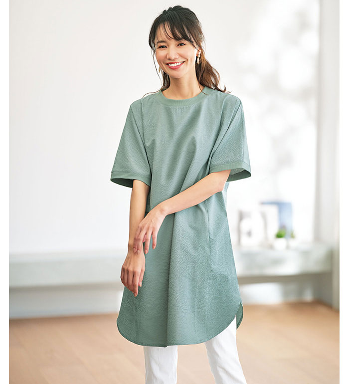 \最大2000円OFFクーポン配布中/チュニック レディース サラリ速乾!サッカー素材ゆったりチュニック2025夏 ベルーナ belluna M-5L